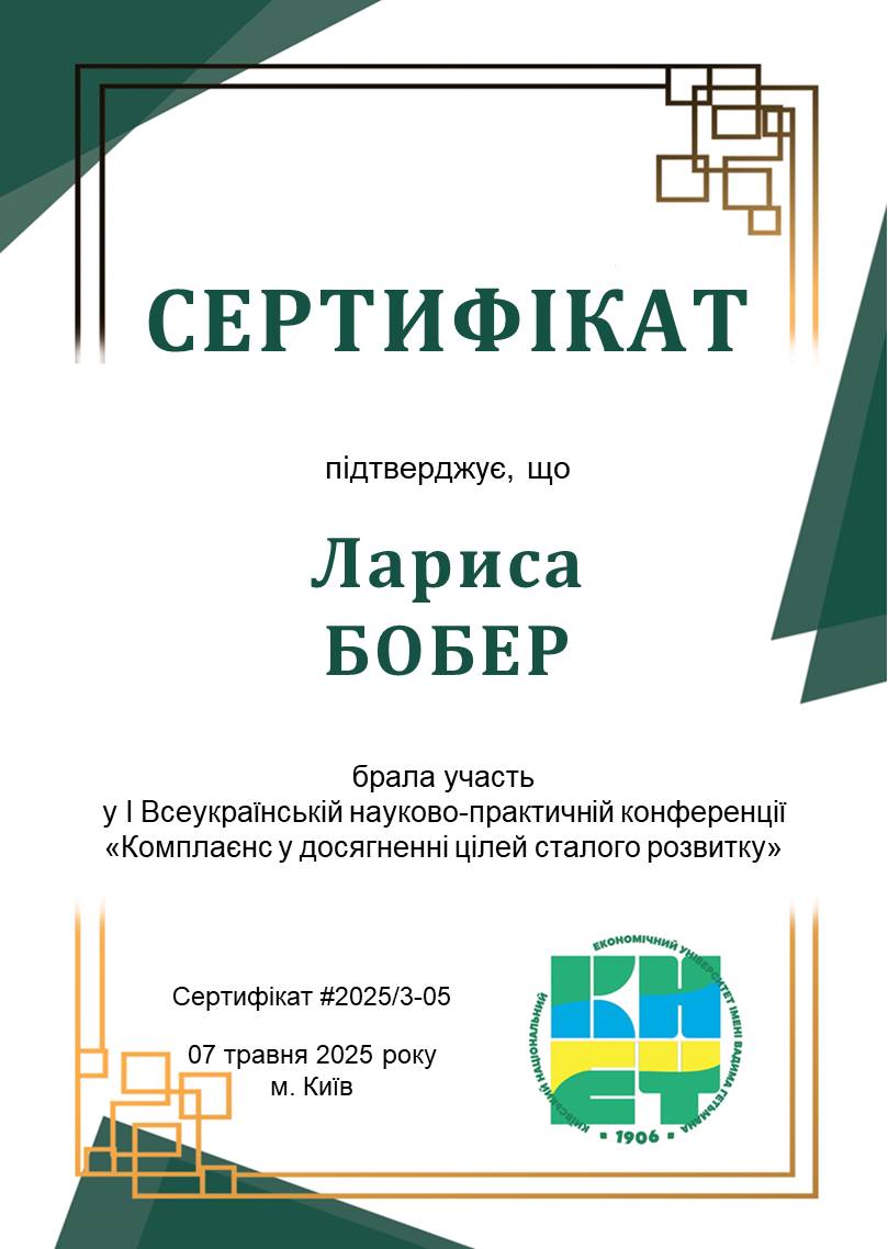 | 12192 | І Всеукаїнська науково-практична конференція "Комплаєнс у досягненні цілей сталого розвитку" | БАГАТОРІВНЕВА ІНТЕГРАЦІЯ КОМПЛАЄНС-ФУНКЦІЙ: ВІД КОМПЛАЄНС-КУЛЬТУРИ ДО ОПЕРАЦІЙНОЇ ДОСКОНАЛОСТІ | КНЕУ, Київ |