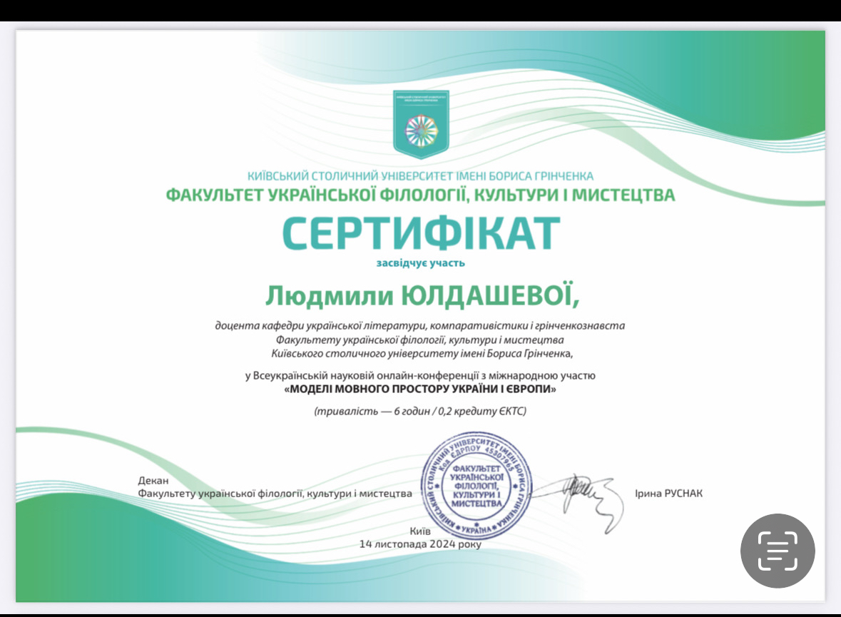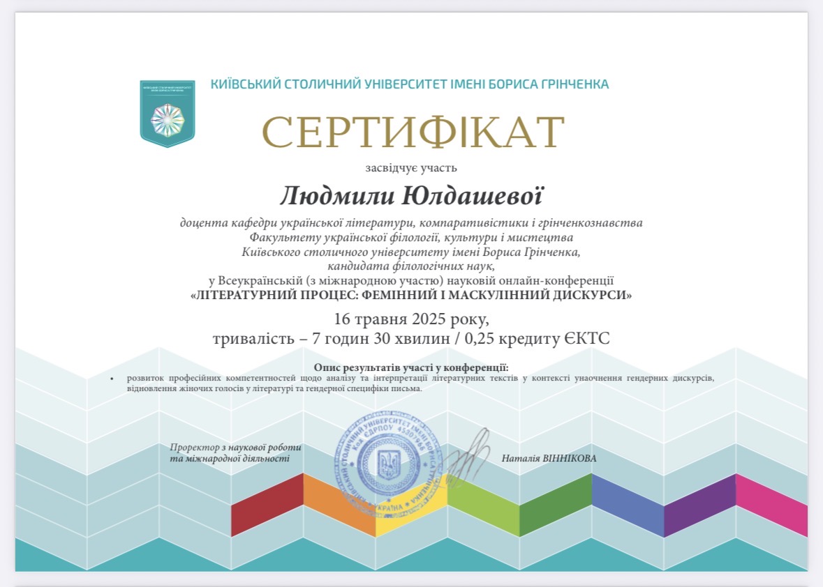 2024. Київський столичний університет імені Бориса Грінченка. Доцент кафедри української літератури, компаративістики і грінченкознавства.