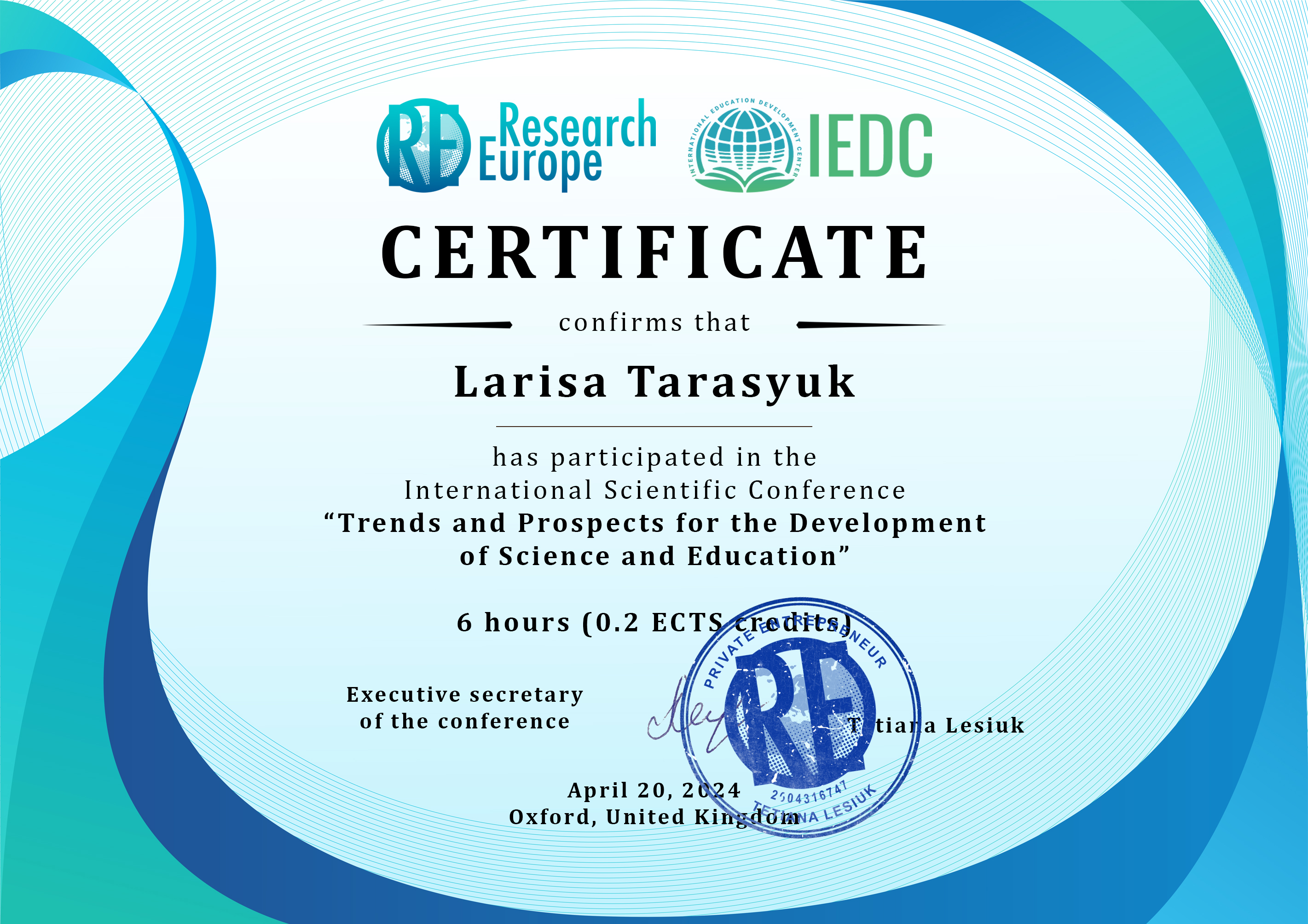 | 10887 | Trend and Prospects for the Development of Sciense and Education | Філософія: цілісна освіта для життя | Oxford, United Kingdom |