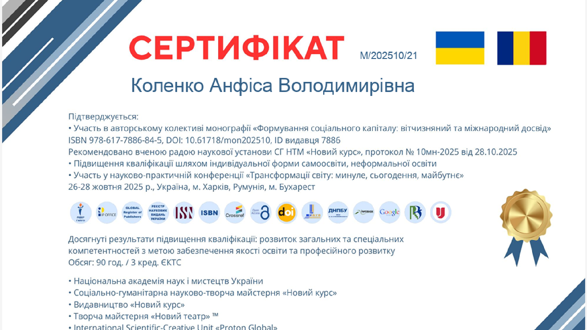 | ID | Назва модулю | Тип модулю | Документ, що засвідчує | Дата видачі довідки / сертифікату |