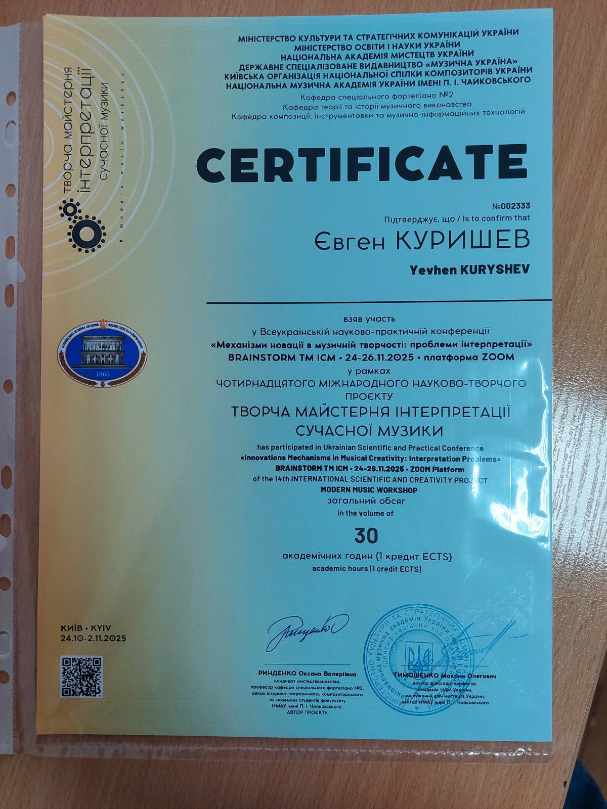 | 987 | Факультет музичного мистецтва і хореографії | Кафедра інструментально-виконавської майстерності | 1.5 | 1 | 2025 | https://www.researchgate.net/profile/Evgen-Kurisev |