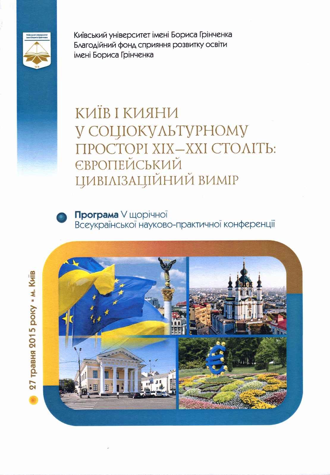 | 359 | Київ і кияни у соціокультурному просторі XIX-XXI cстоліть: європейський цивілізаційний вимір | Київ і кияни у соціокультурному просторі XIX-XXI cстоліть: європейський цивілізаційний вимір | м. Київ Київський університет імені Бориса Грінченка Благодійний фонд спияння розвитку освіти імені Бориса Грінченка |