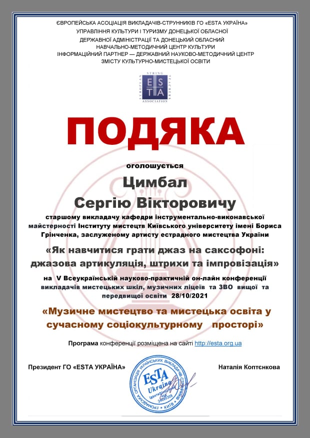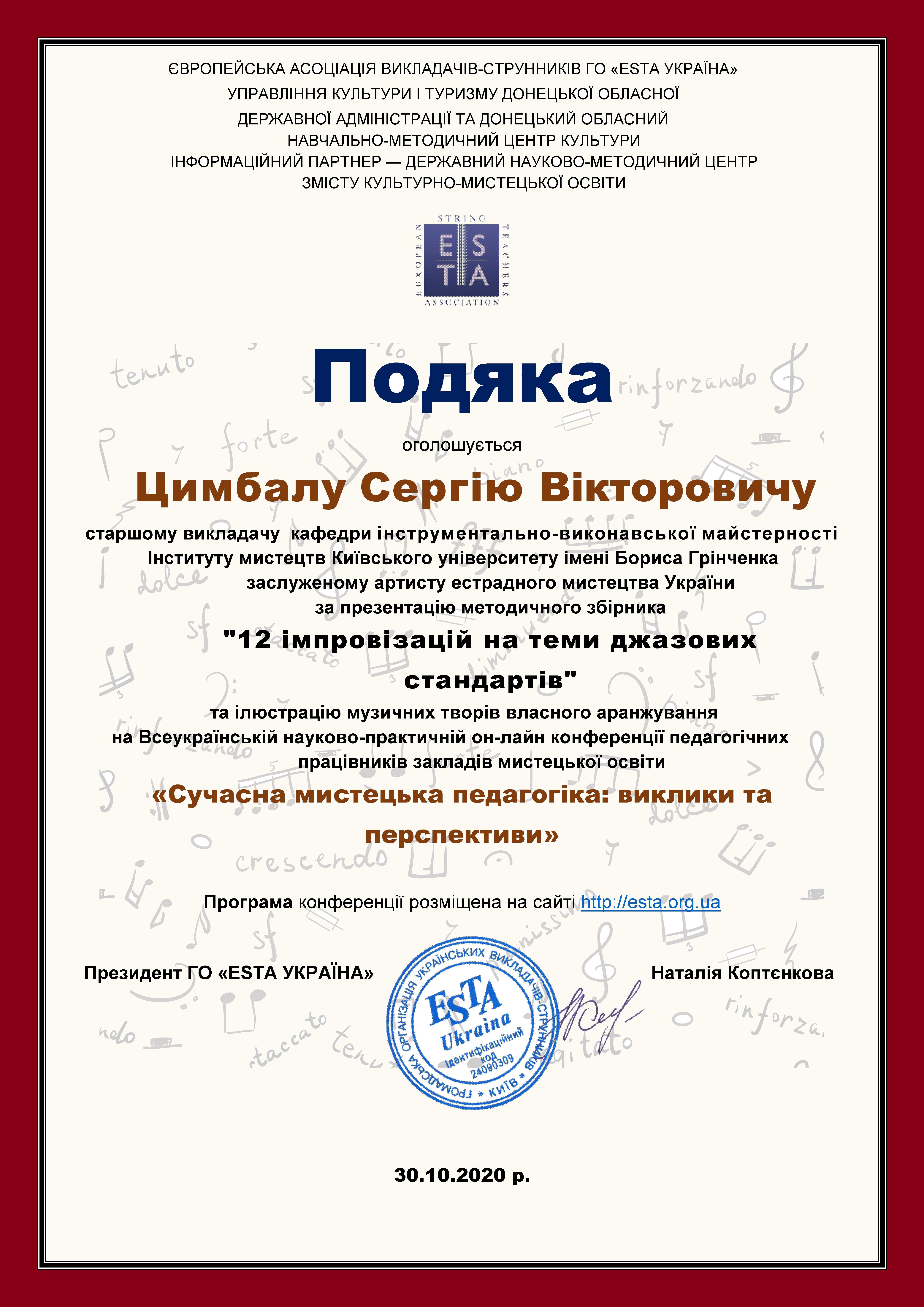 | 202 | Факультет музичного мистецтва і хореографії | Кафедра інструментально-виконавської майстерності | 0 | 0 | 2025 | https://www.researchgate.net/profile/Serhii_Tsymbal |