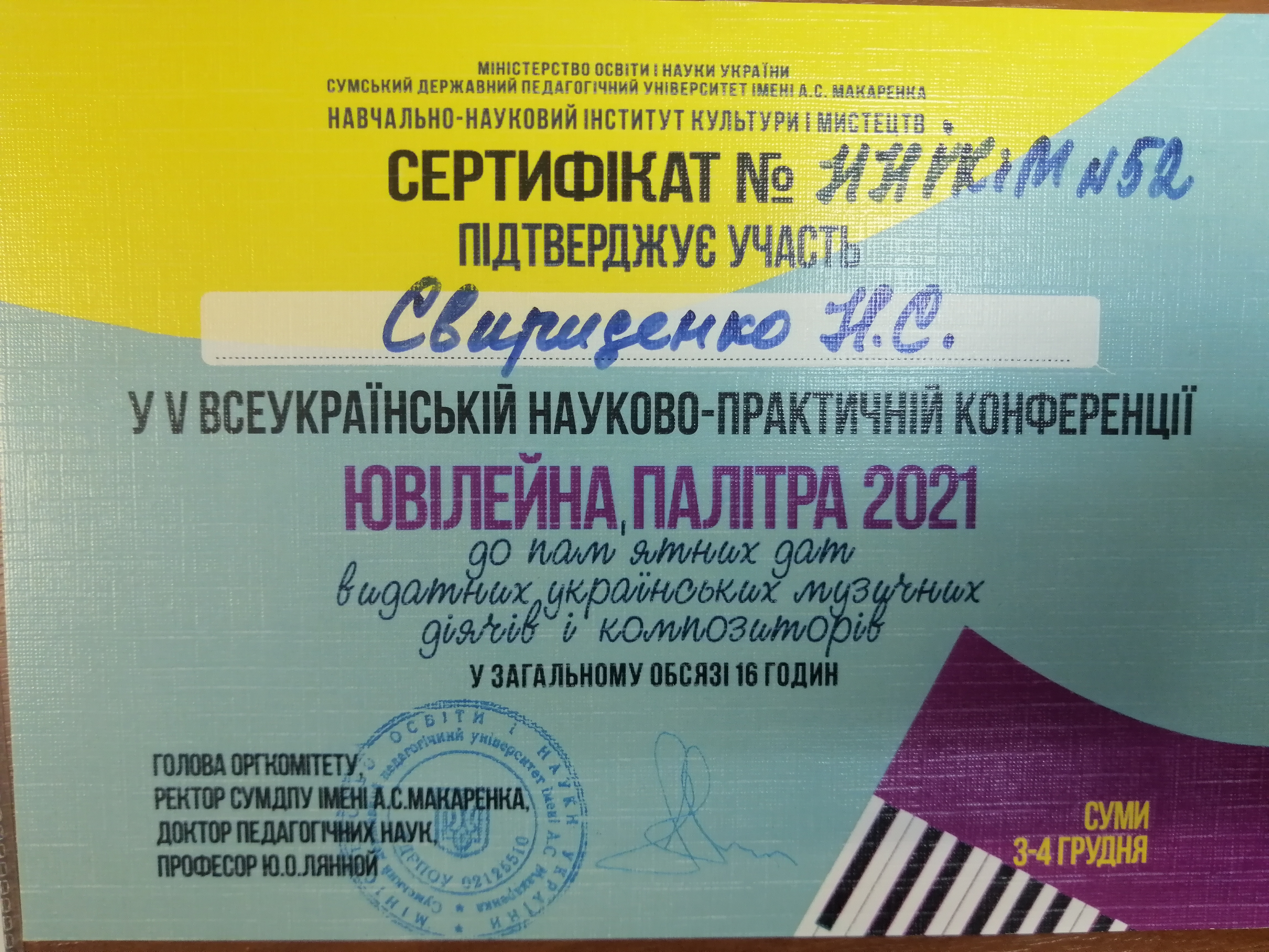 | 148 | Факультет музичного мистецтва і хореографії | Кафедра інструментально-виконавської майстерності | Міжнародні конкурси, проведені в Україні | IX Міжнародний фортепіанний конкурс «Piano- Art» | Україна, Словачина | 2025 | piano-art-sviridenko.pdf |