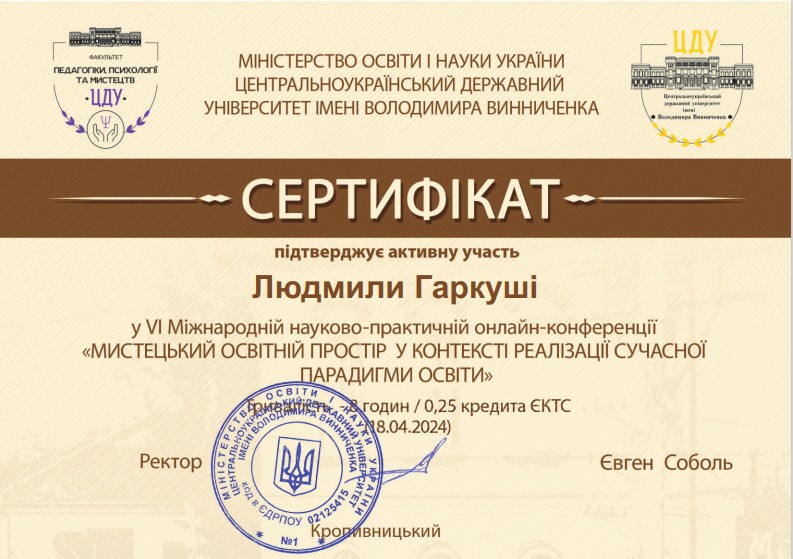 186 Факультет музичного мистецтва і хореографії Кафедра інструментально-виконавської майстерності 2.7 1 2025 https://www.researchgate.net/profile/Lyudmila_Harkusha