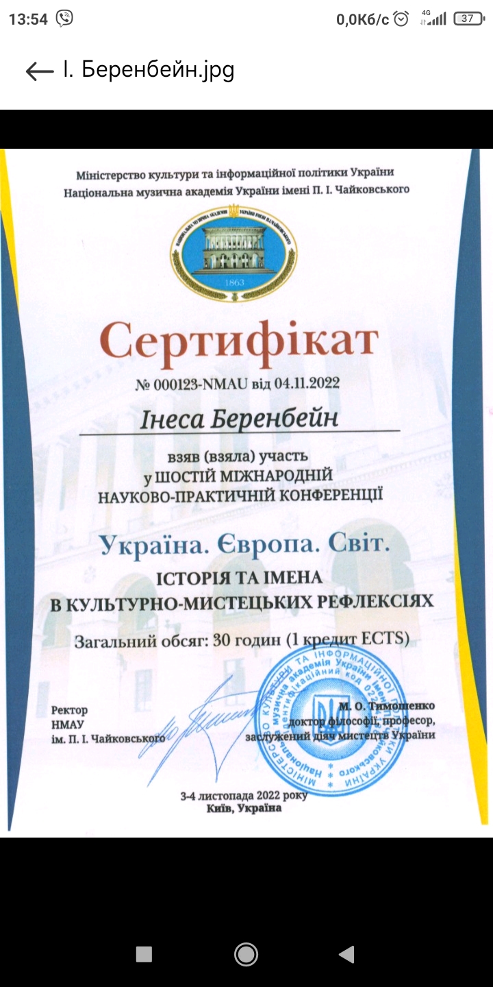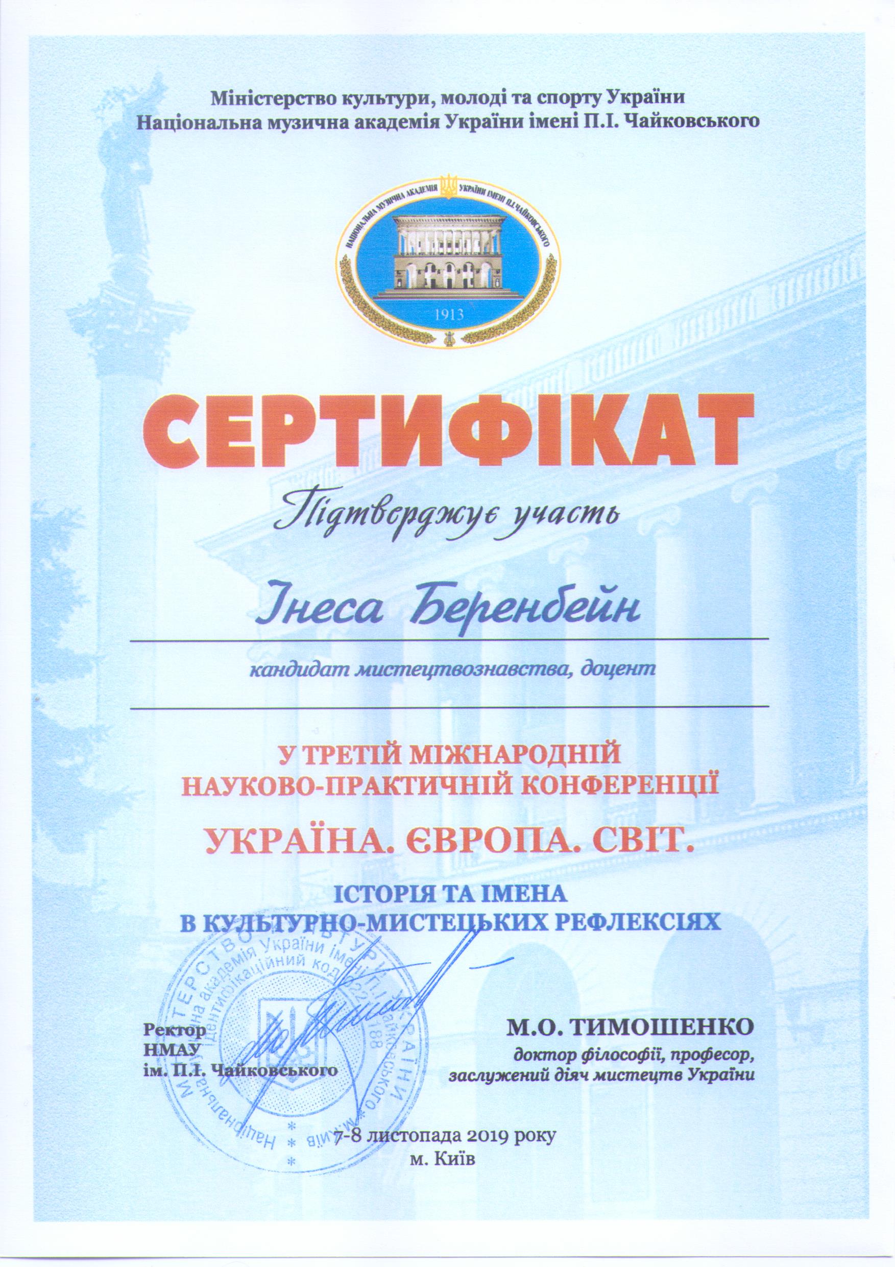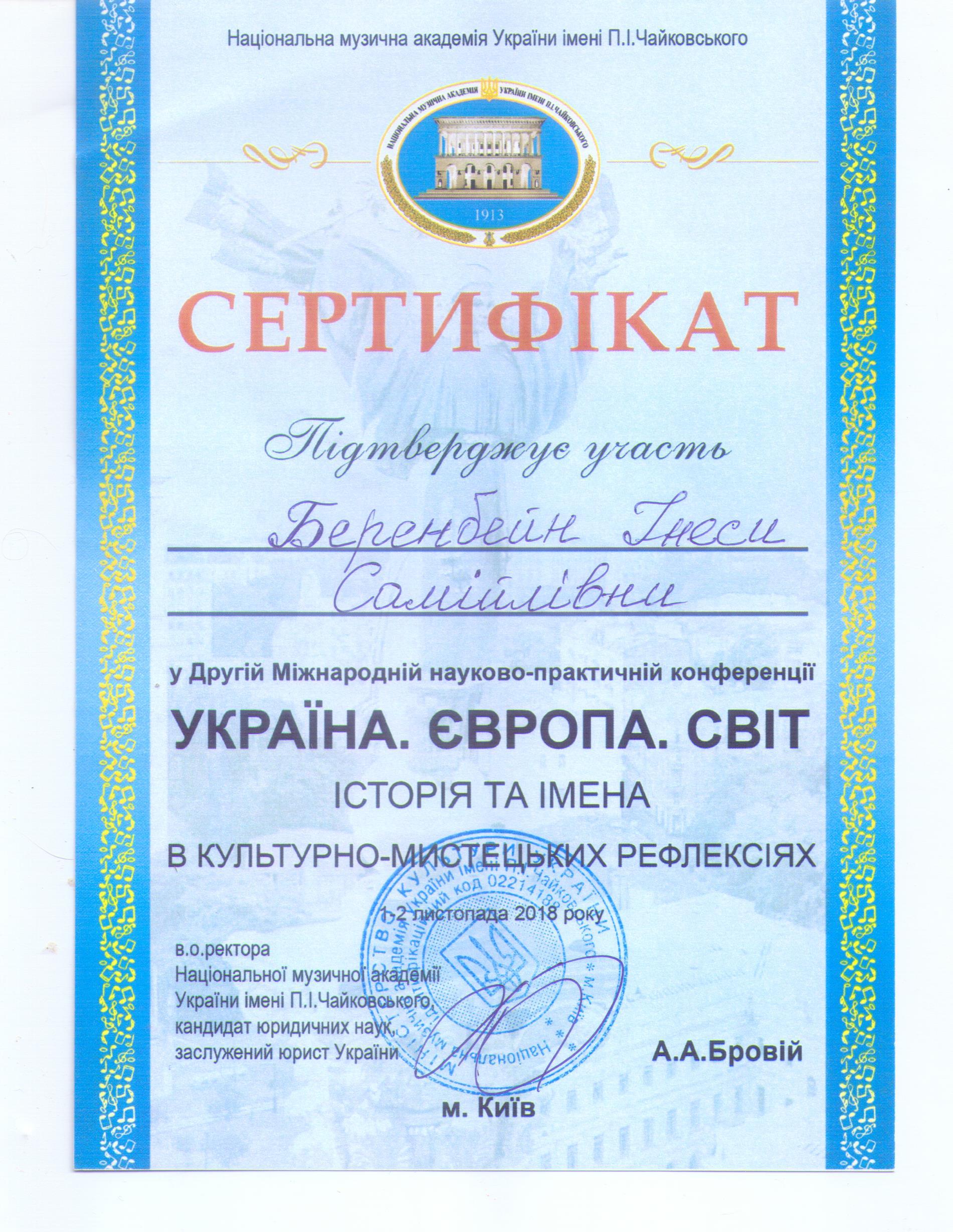 | 8548 | Україна. Європа. Світ. Історія та імена в культурно-історичних рефлексіях | Камерність як вияв романтичних рефлексій фортепіанної творчості Миколи Лисенка | Національна музична академія України, м.Київ |