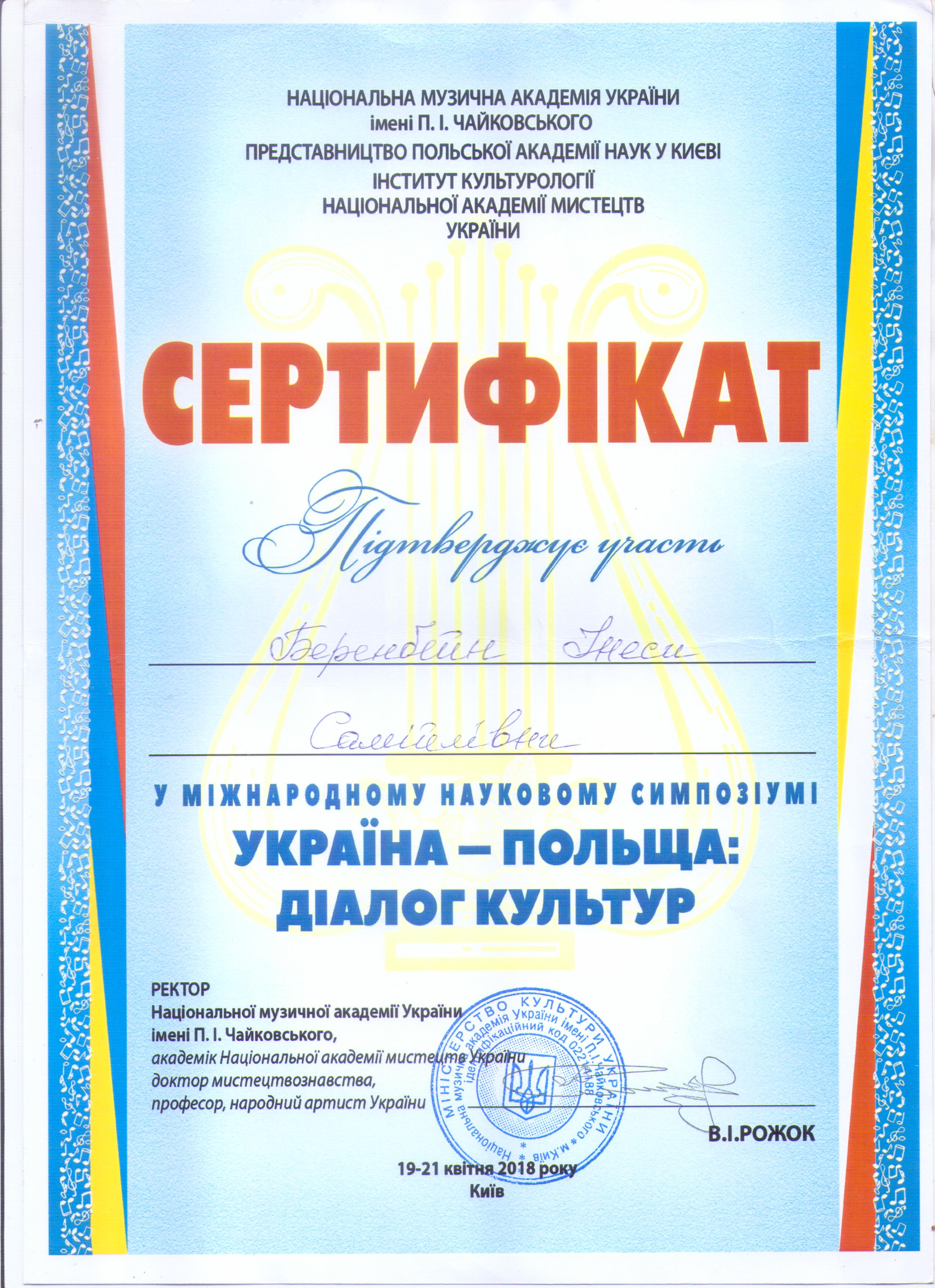 | 6453 | Україна - Польща: діалог культур | Реконструкція історії в оперній творчості Валентина Костенка: від Гайдамаччини до Пацифікації | Національна музична академія України імені П.І.Чайковського |