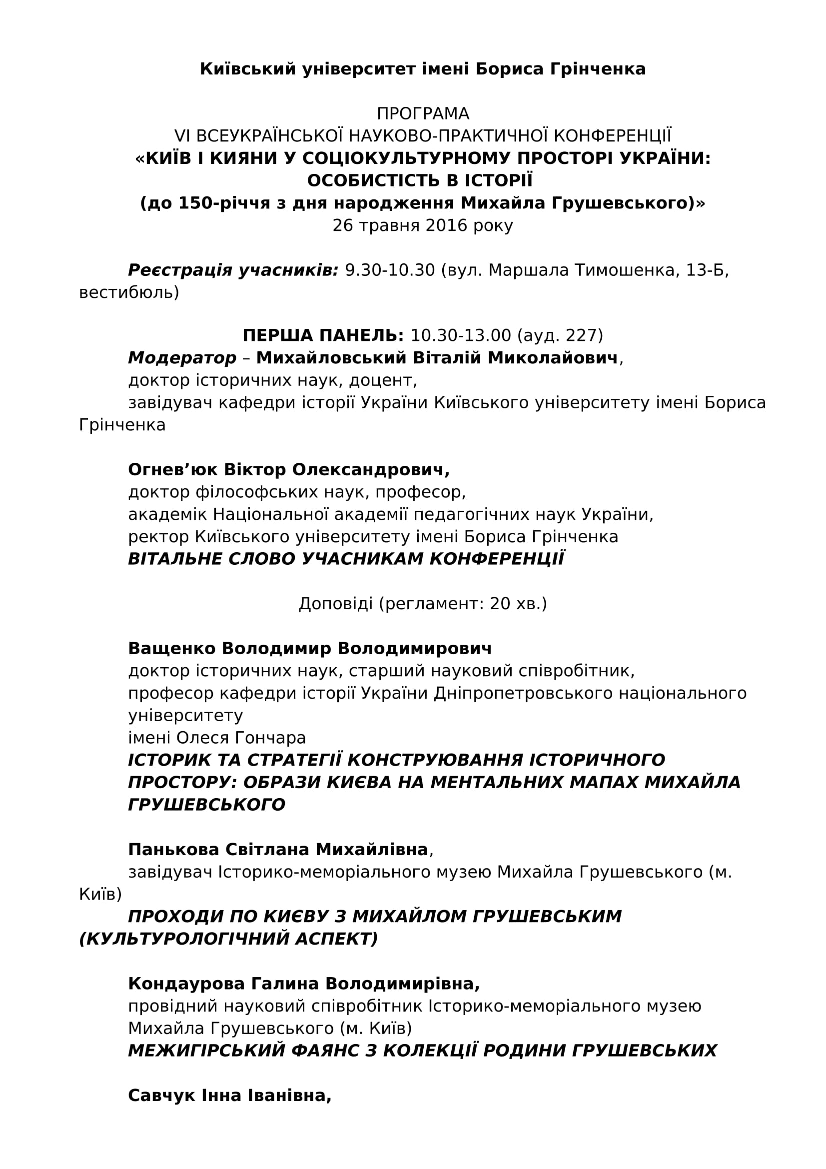 | 55113 | XIV International Scientific Conference “Kyiv and Kyivans in the Socio-Cultural Space of Ukraine: Memory Politics in the Past and Present” | |