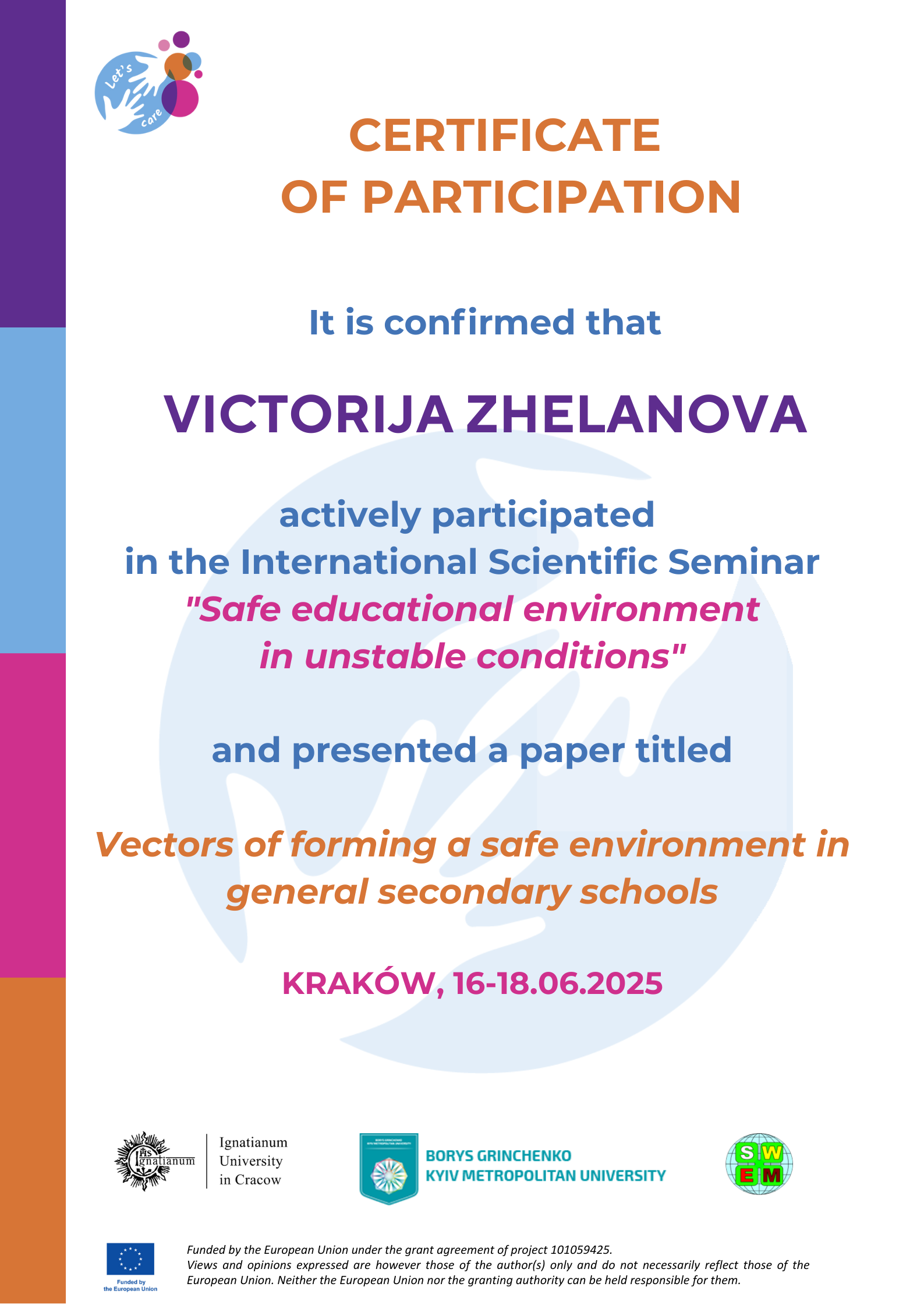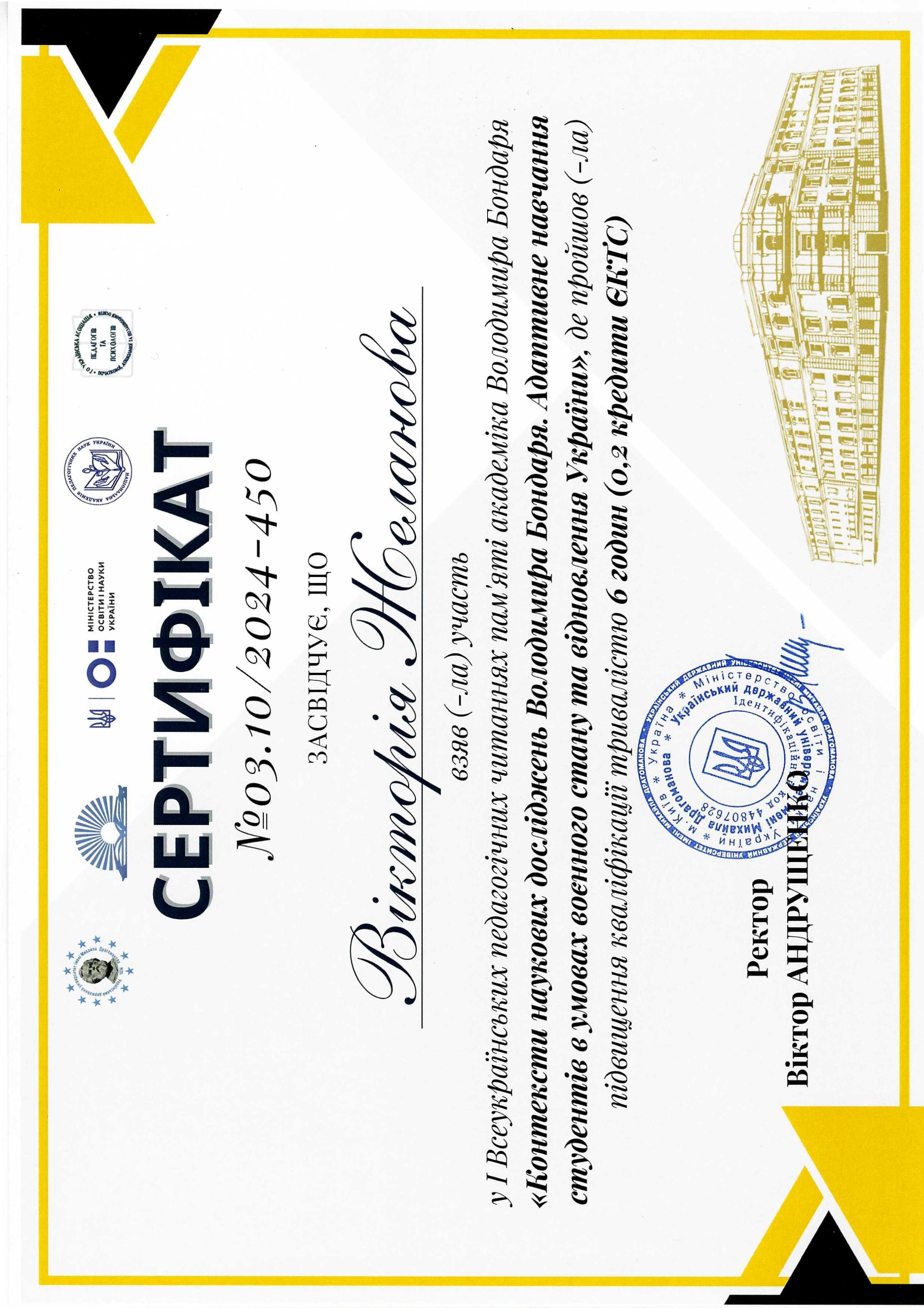 | 12041 | International Scientific Seminar "Safe educational environment in unstable conditions" | - | Польща |