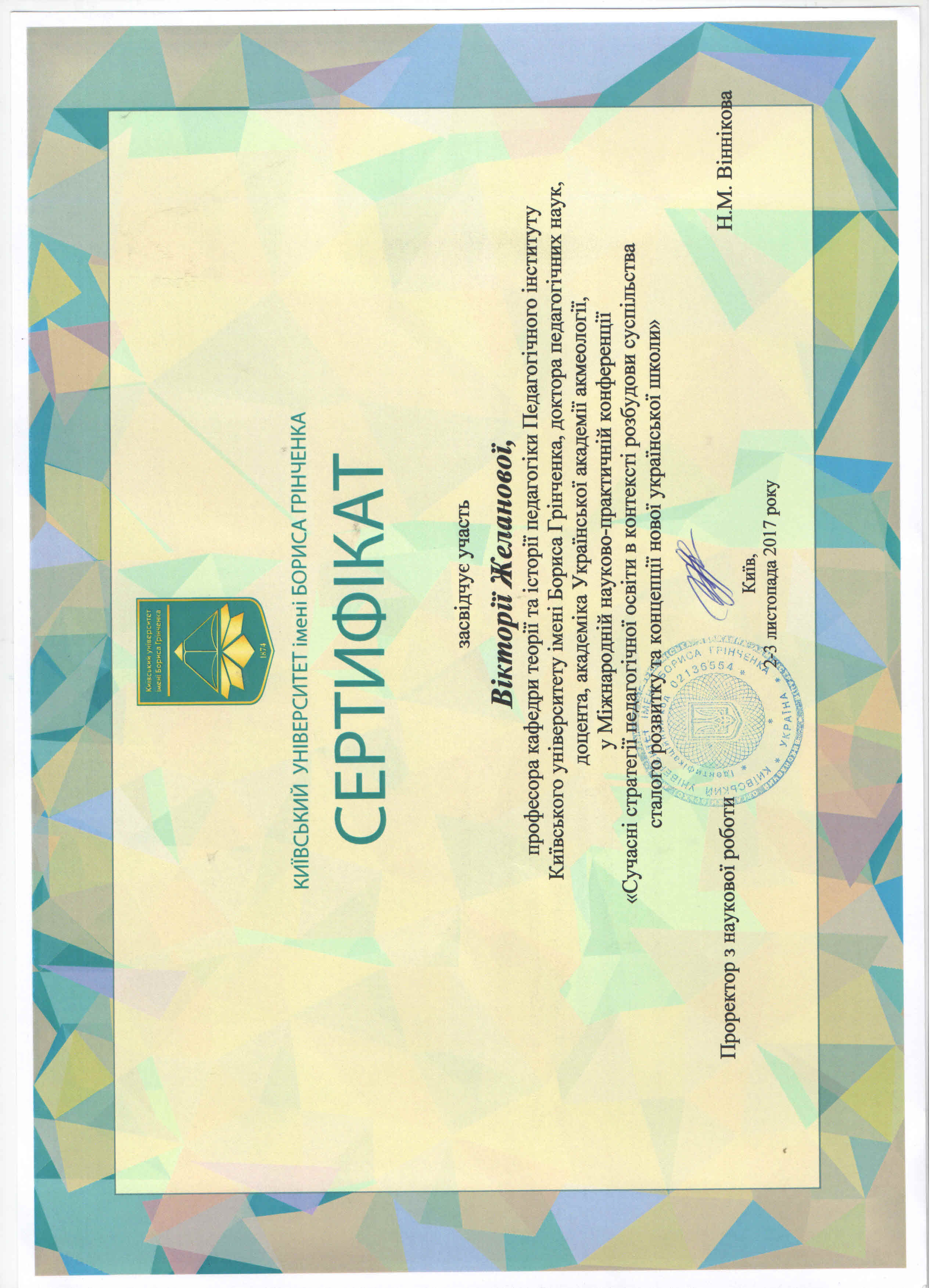 | 50 | Факультет педагогічної освіти | Зимова | VIII Міжнародна наукова школа для докторантів, аспірантів, молодих учених та магістрантів з галузі знань 01 «Освіта / Педагогіка» | Київський університет імені Бориса Грінченка | Член робочої групи | 2023 | наказ №851.pdf |