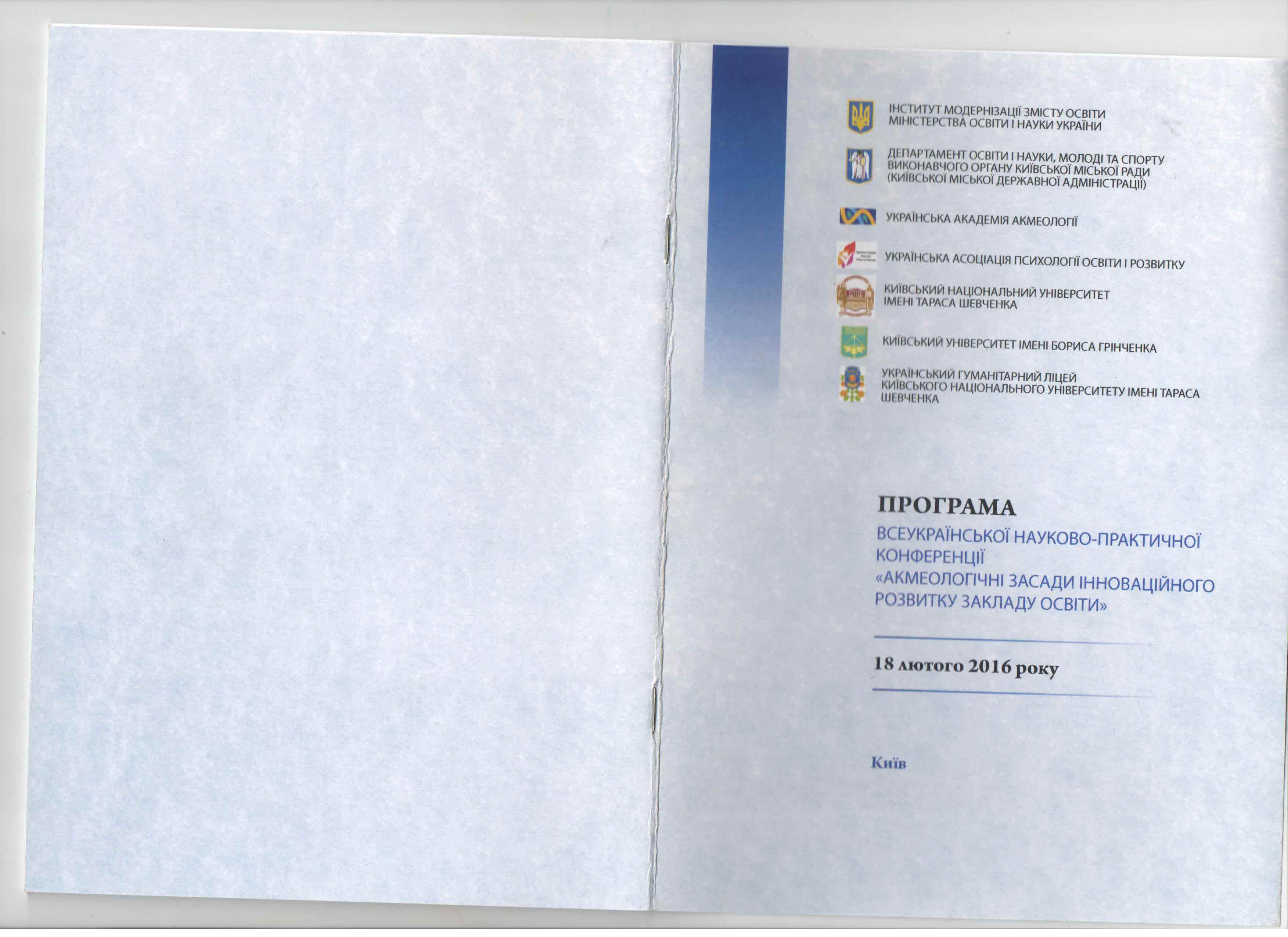 | 215 | Всеукраїнська науково-практична конференція 'Акмеологічні засади інноваційного розвитку закладу освіти' | Використання психобіографічного методу в системі акмемоніторингу | Київ |