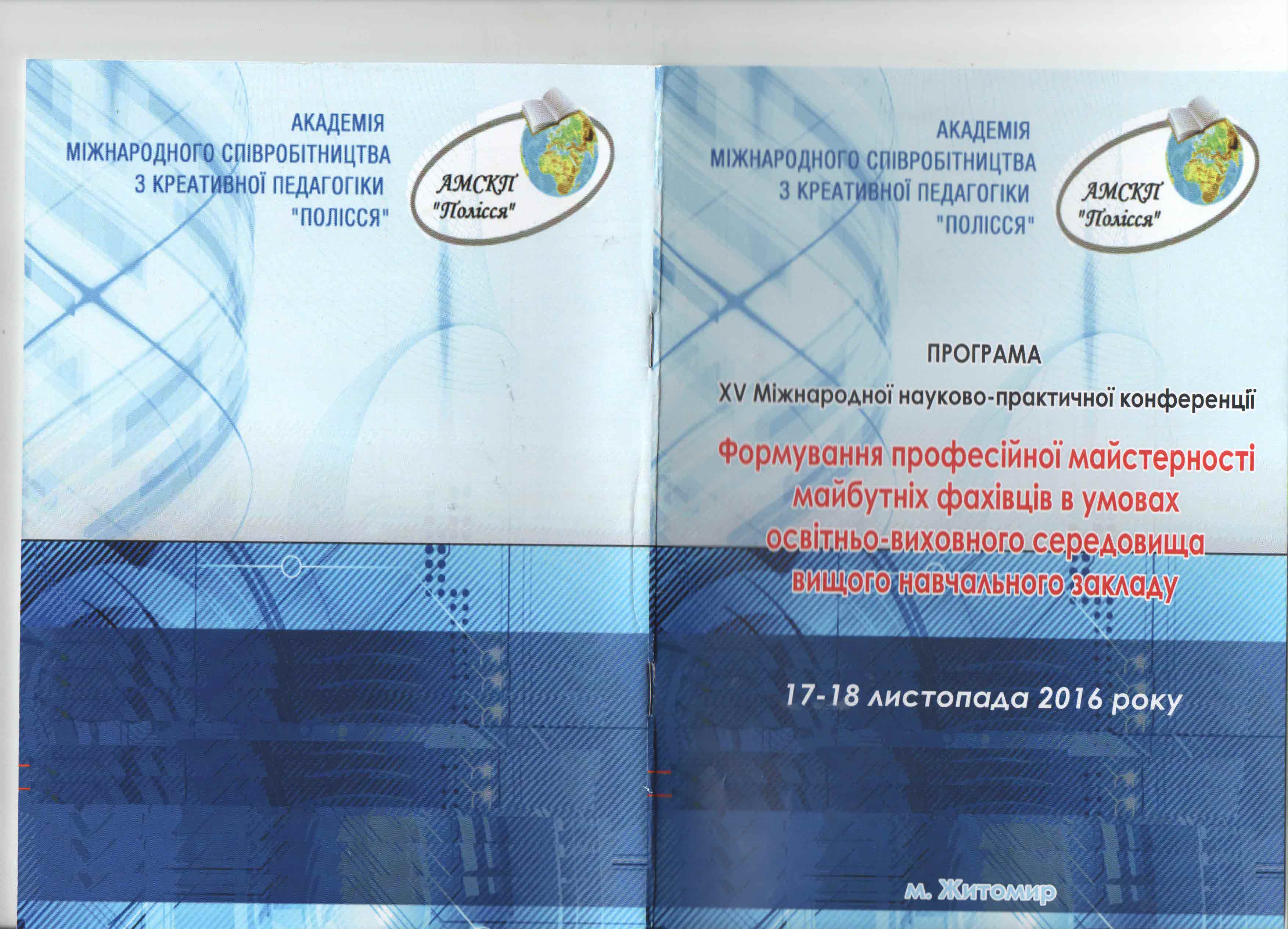 | 5982 | "Професійна діяльність сучасного педагога в умовах парадигмальних змін" | - | Київ |