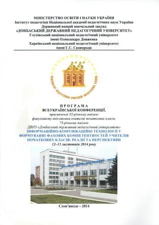 | 219 | Інформаційно-комунікаційні технології у формуванні фахових компетентностей учителів початкових класів: реалії та перспективи | Рефлексіогенез майбутнього вчителя початкових класів у технології контекстного навчання | Слов'янськ |