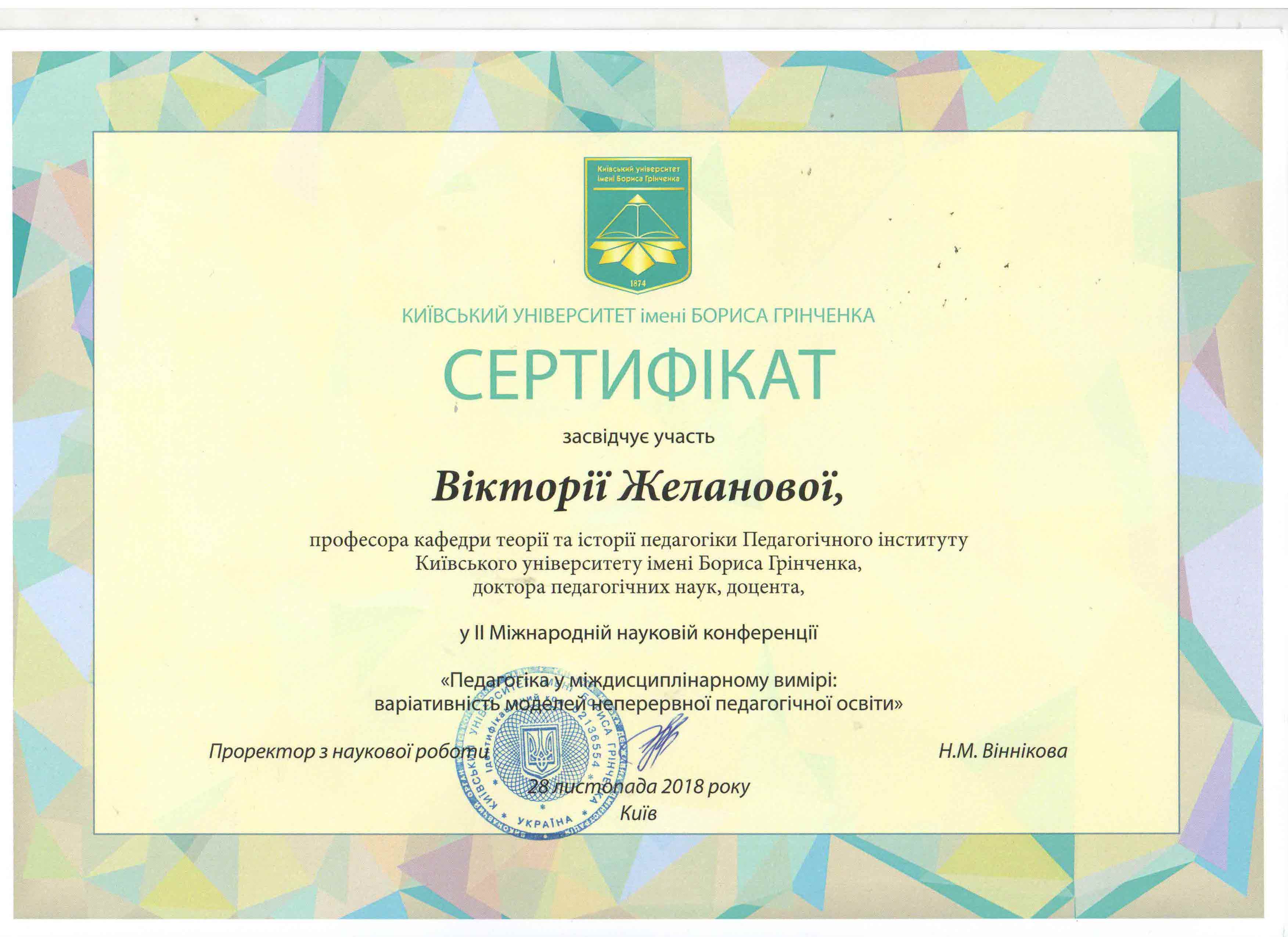 | 3690 | ІІ Міжнародна наукова конференція «ПЕДАГОГІКА У МІЖДИСЦИПЛІНАРНОМУ ВИМІРІ: ВАРІАТИВНІСТЬ МОДЕЛЕЙ НЕПЕРЕРВНОЇ ПЕДАГОГІЧНОЇ ОСВІТИ» | Міждисциплінарний синтез філософії, педагогіки й психології у забезпеченні якості вищої освіти у сучасному університеті | Київ, Київський університет імені Бориса Грінченка |
