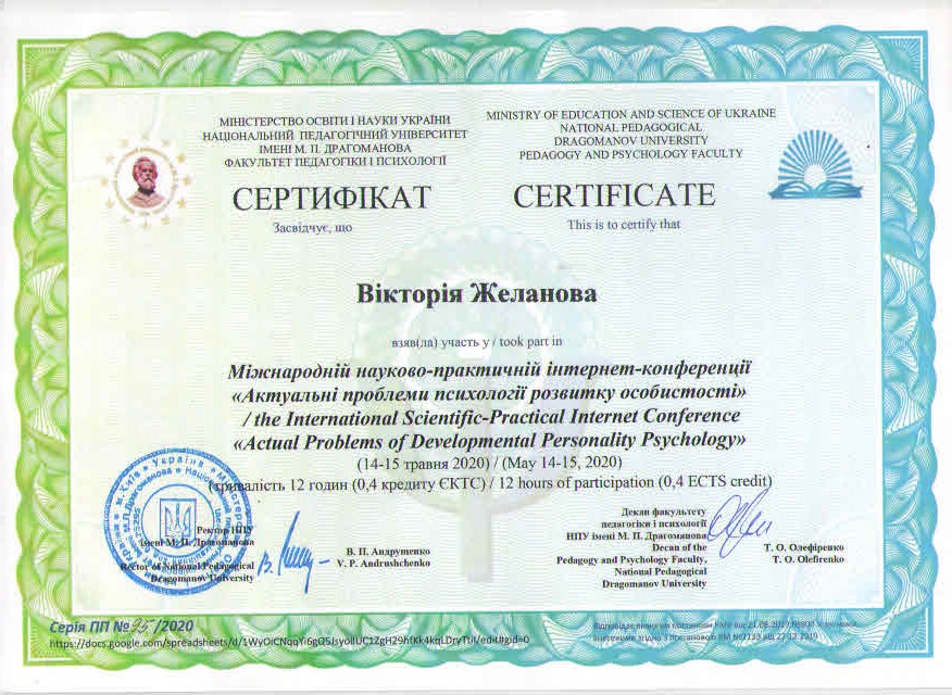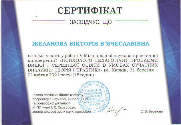 | 107 | Факультет педагогічної освіти | Кафедра освітології та психолого-педагогічних наук | 118.5 | 5 | 2025 | https://www.researchgate.net/profile/Victoria_Zhelanova |