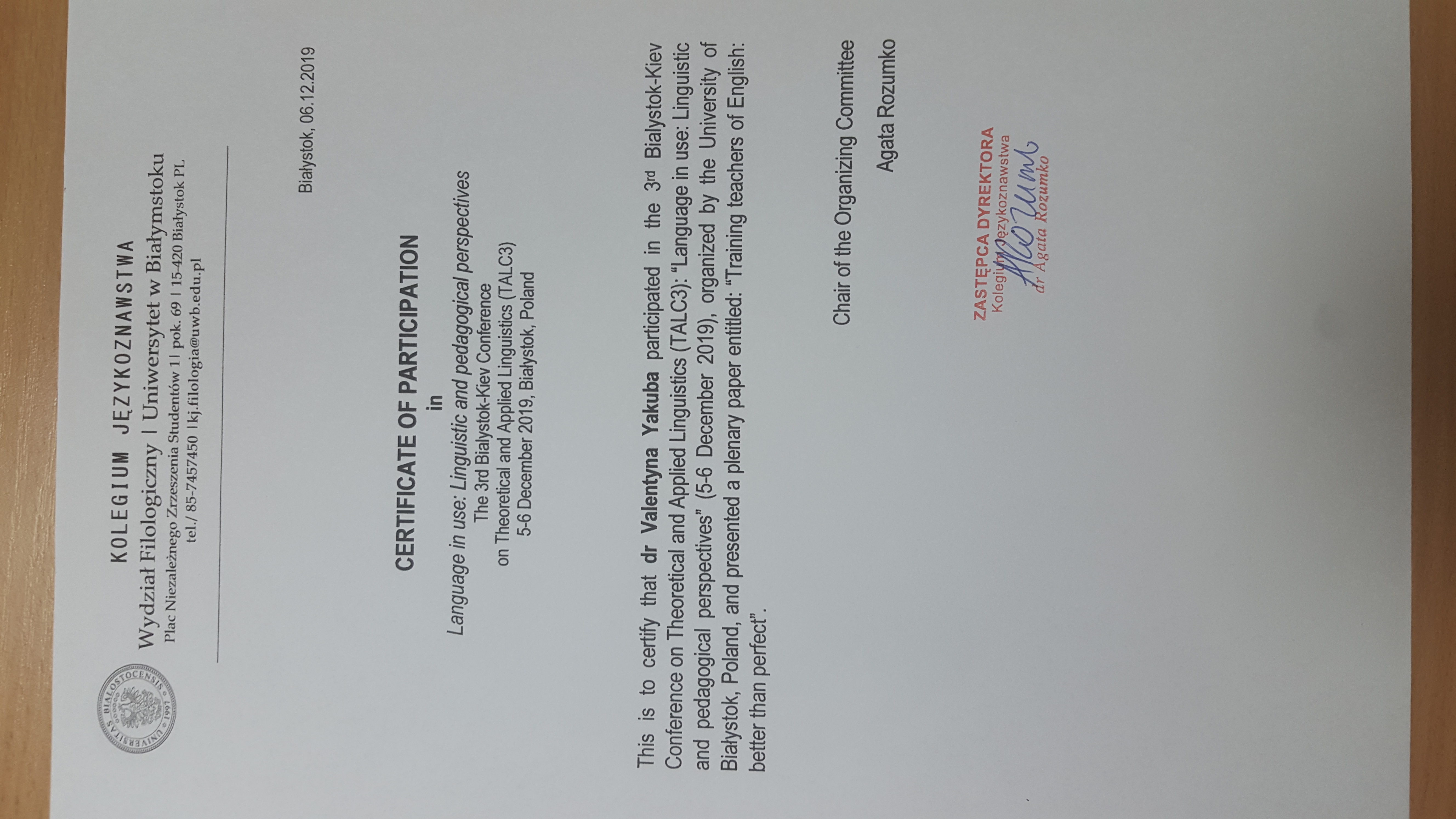 | 5082 | Language in Use: Linguistic and Pedagogical Perspectives | Training Teachers of English: Better Than Perfect | Bialystok, Poland |
