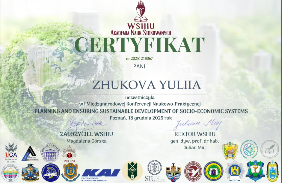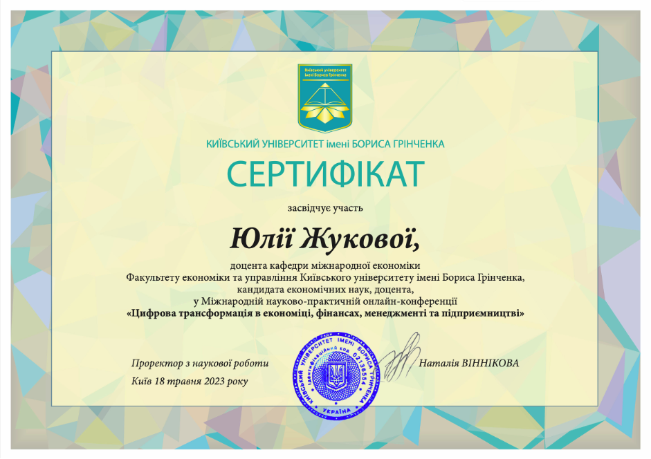 | 817 | Факультет економіки та управління | Кафедра міжнародної економіки | 42 | 3 | 2025 | https://www.researchgate.net/profile/Ju-Zhukova/stats |