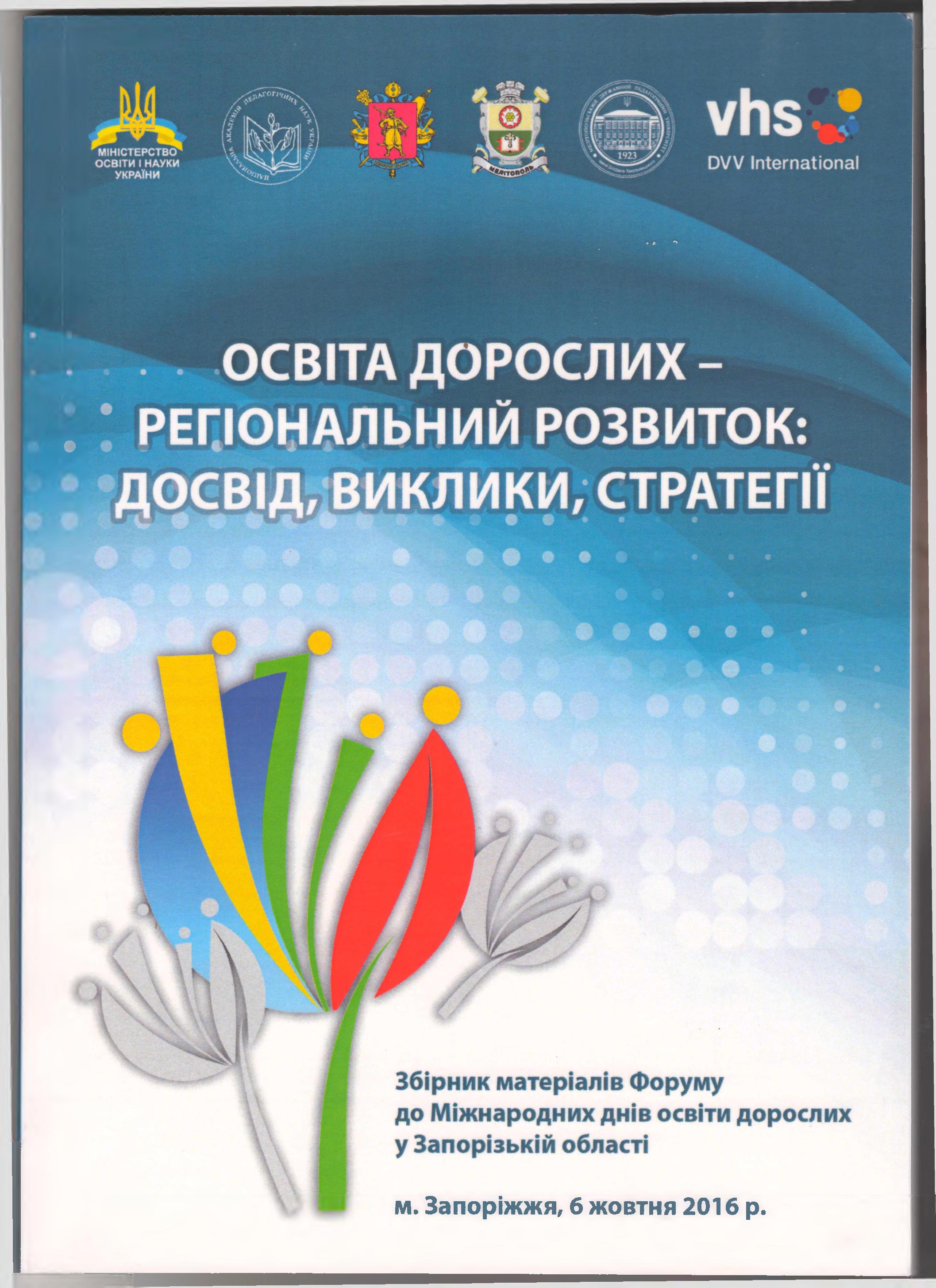 | 1784 | Освіта дорослих - регіональний розвиток: досвід, виклики, стратегії | Нові можливості для неформальної освіти дорослих в Європі | м. Запоріжжя, 6 жовтня 2016 р. |