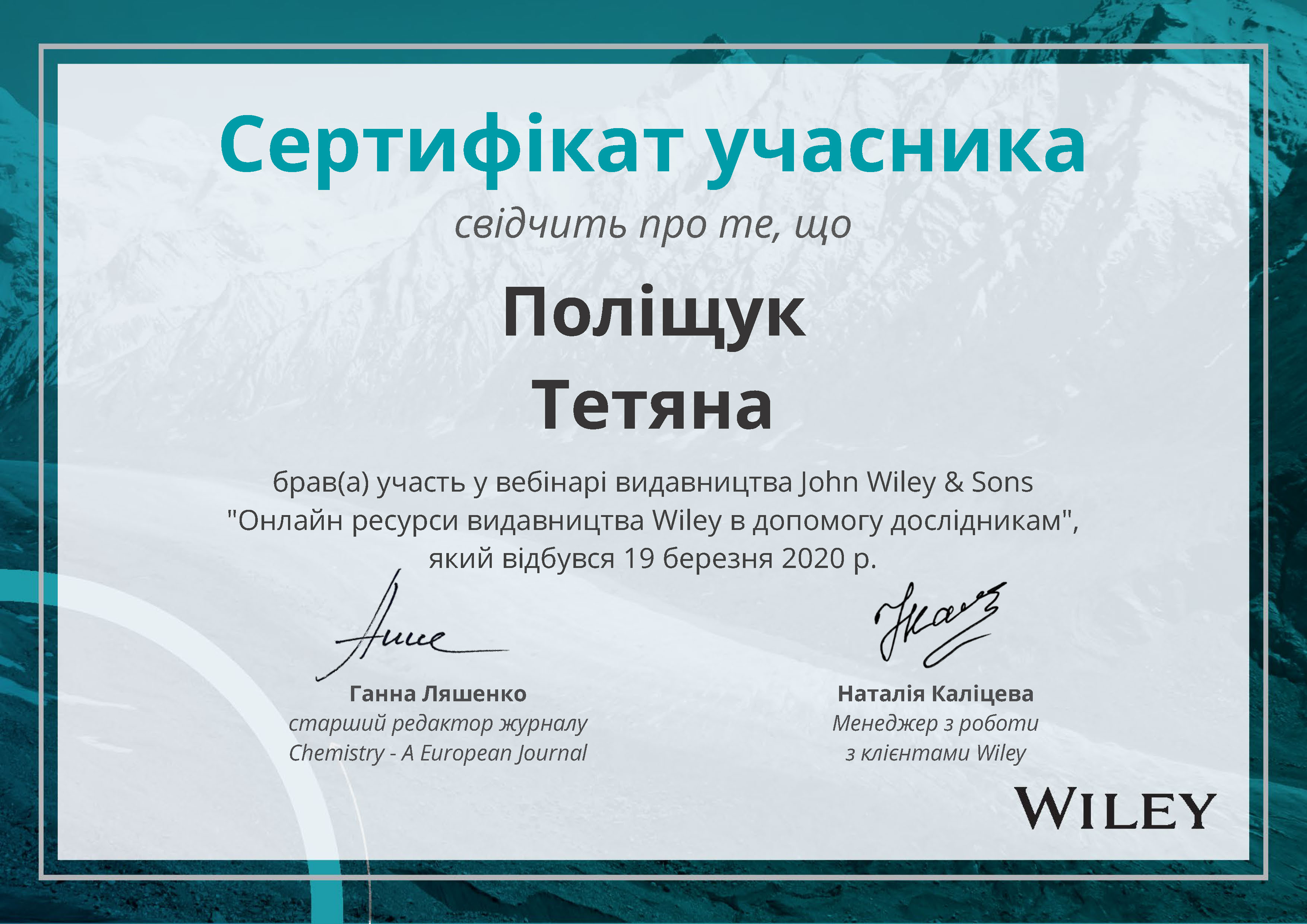 | 5219 | Вебінар видавництва John Wiley @ Sons "Онлайн ресурси видавництва Wiley в допомогу дослідникам | Онлайн доступ до Wiley | Мінськ |