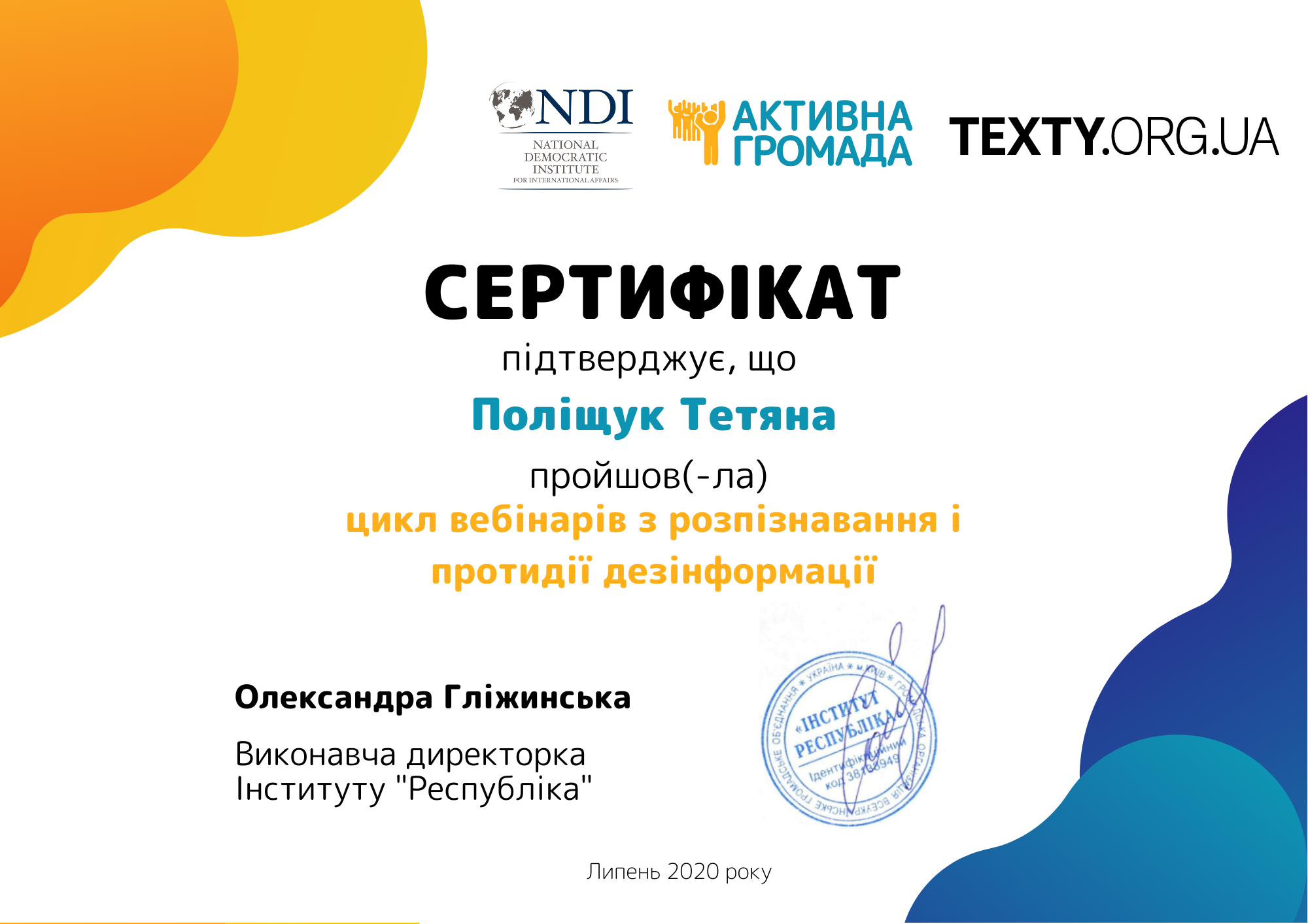 | 5851 | Серія вебінарів від Активної Громади спільно з Тексти та Національного демократичного інституту | "Мем як зброя дезінформації" "Геополітика на дивані" "Деза і коронавірус. Як все починалось?" | Київ, Україна |