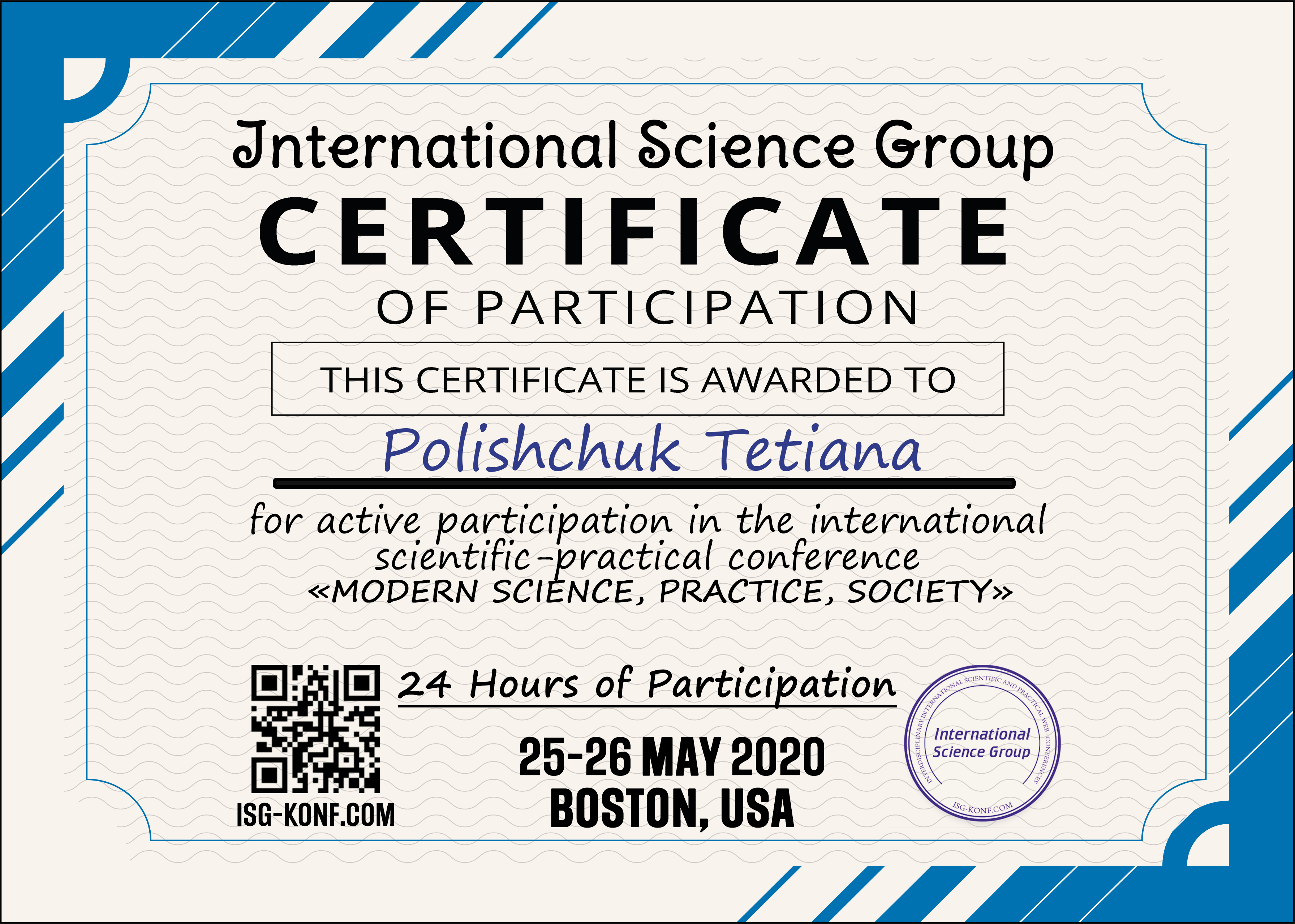 | ID | Назва | Тема доповіді | Місце проведення | Документ, що засвідчує | Дата проведення |