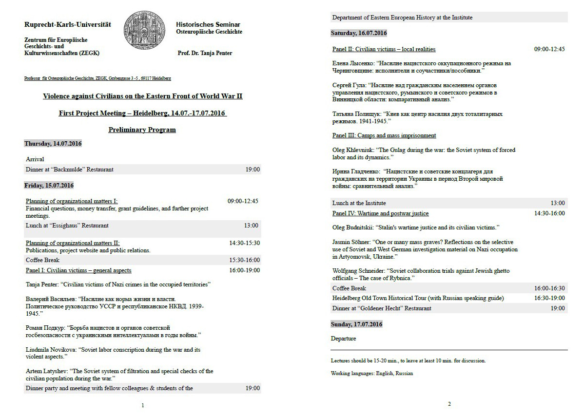 | 633 | Violence against Civilians on the Eastern Front of World War II First Project Meeting – Heidelberg | Киев как центр насилия двух тоталитарных режимов. 1941-1945 | м.Гейдельберг, Німеччина |