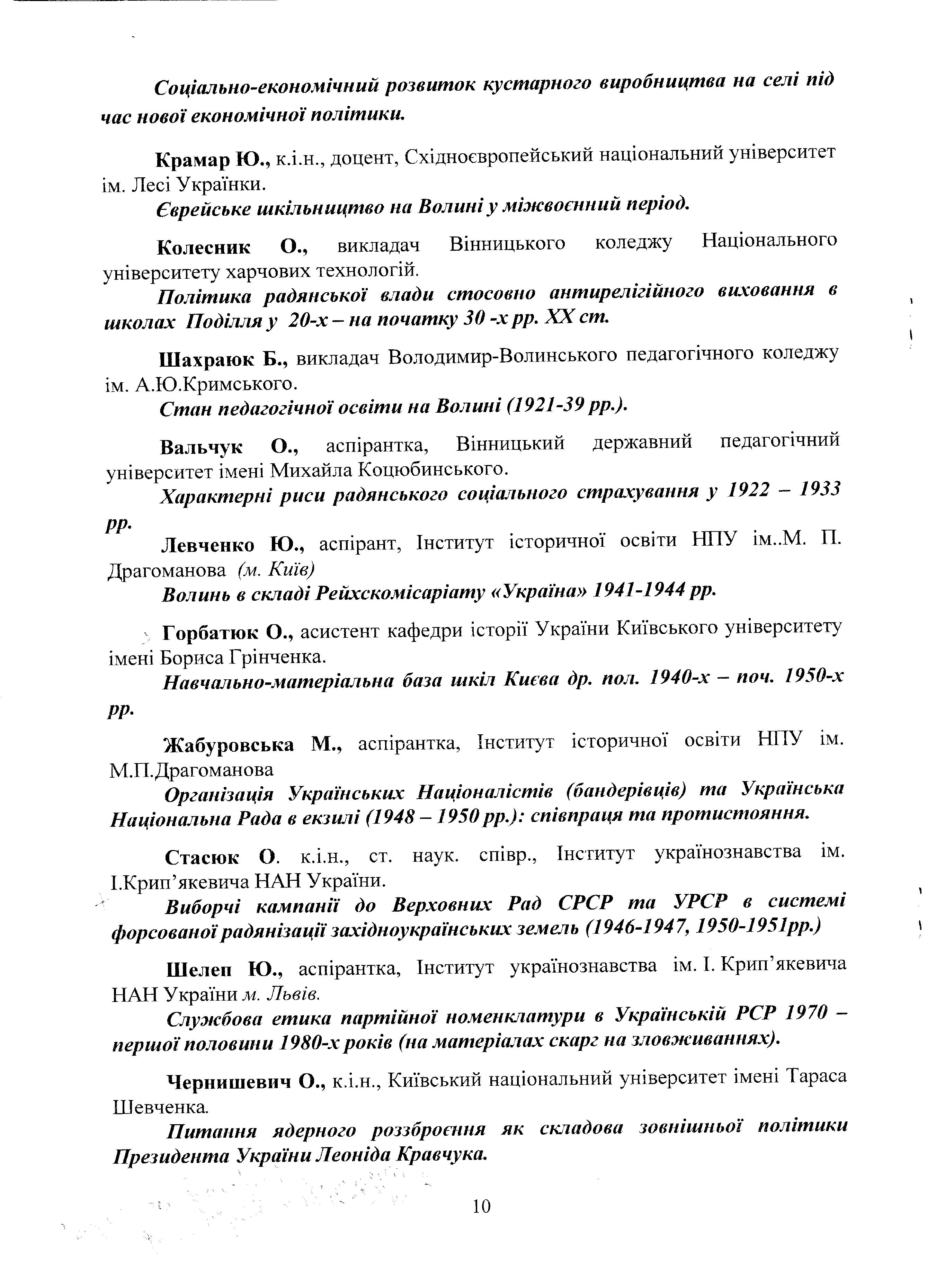 | 636 | VII Волинська Всеукраїнська історико-краєзнавча конференція | Соціально-економічний розвиток кустарного виробництва на селі під час нової економічної політики | Житомир |