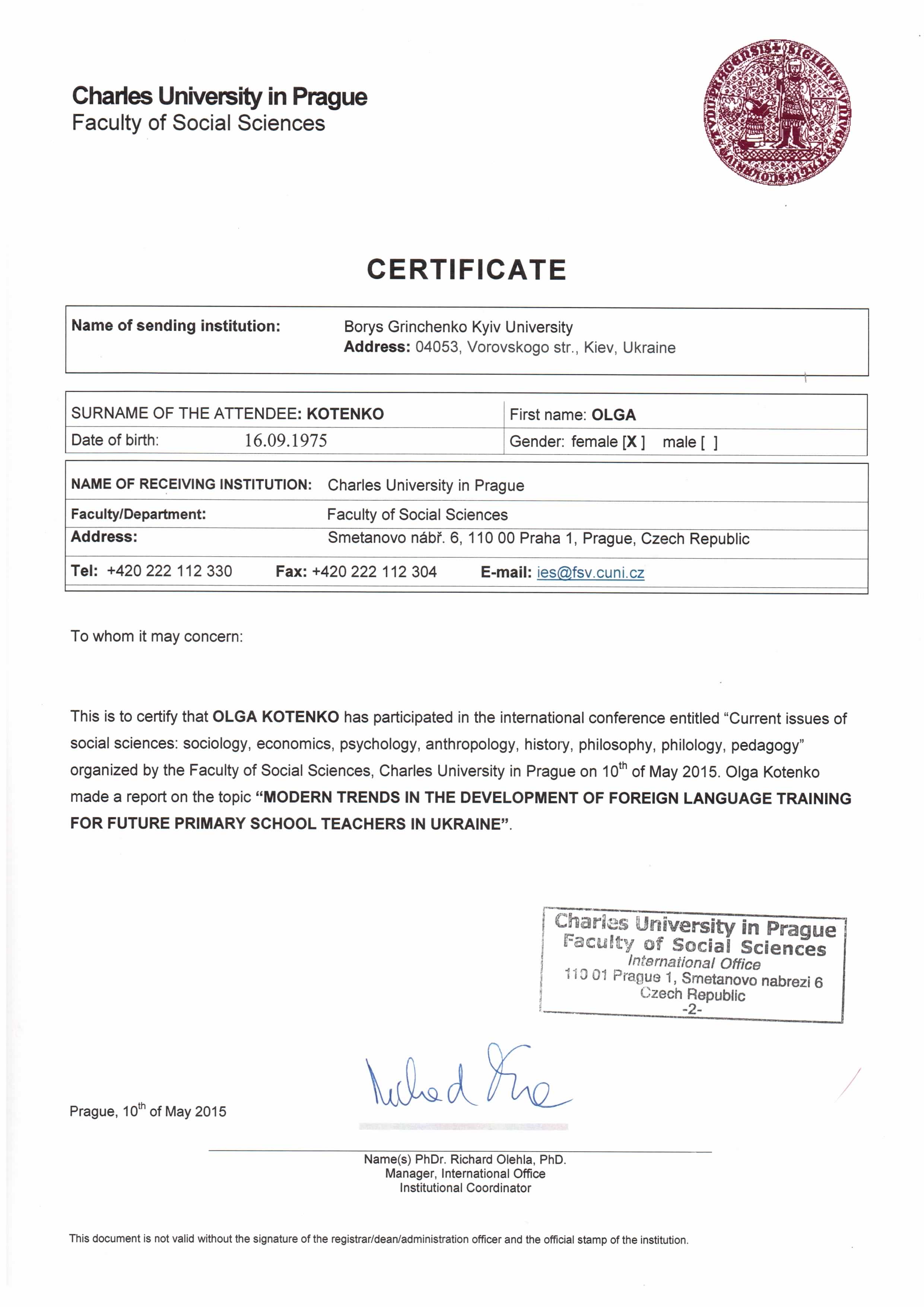 | 315 | Scientific and Professional Conference Pedagogy and Psychology in the age of globalization | Future Teachers` Foreign Language Competence Formation | Budapest |