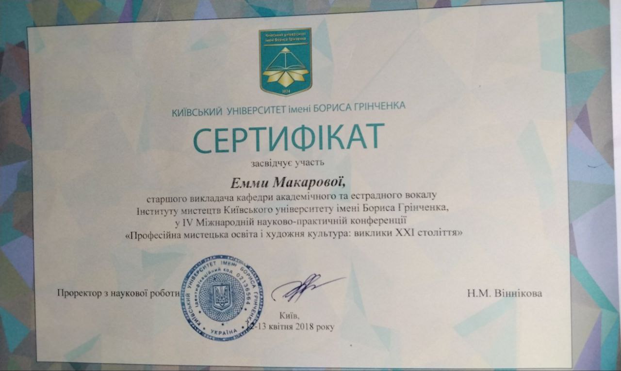 | 508 | Факультет музичного мистецтва і хореографії | Кафедра академічного та естрадного вокалу | 0.7 | 1 | 2025 | https://www.researchgate.net/profile/Emma_Makarova |