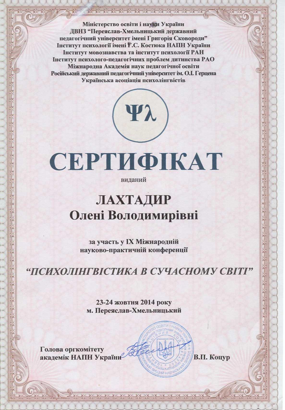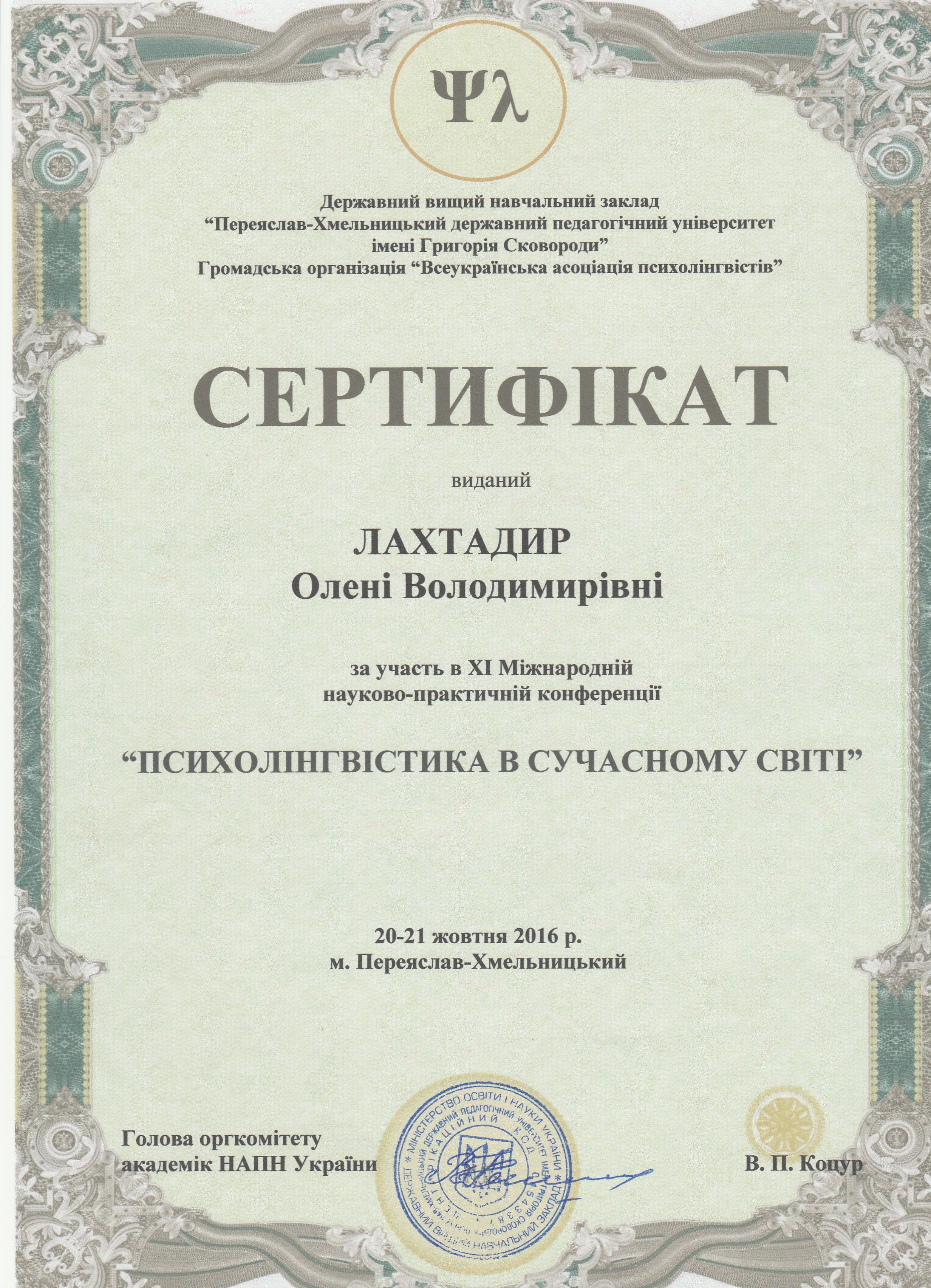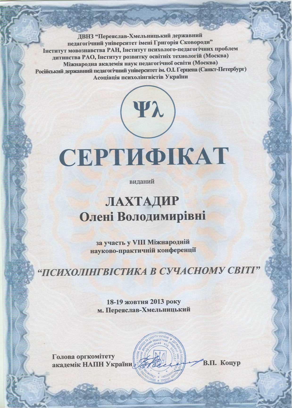 | 369 | 'Психолінгвістика в сучасному світі' | 'Комунікативна компетентність як психологічний інструмент спілкування особистості' | м. Переяслав-Хмельницький |