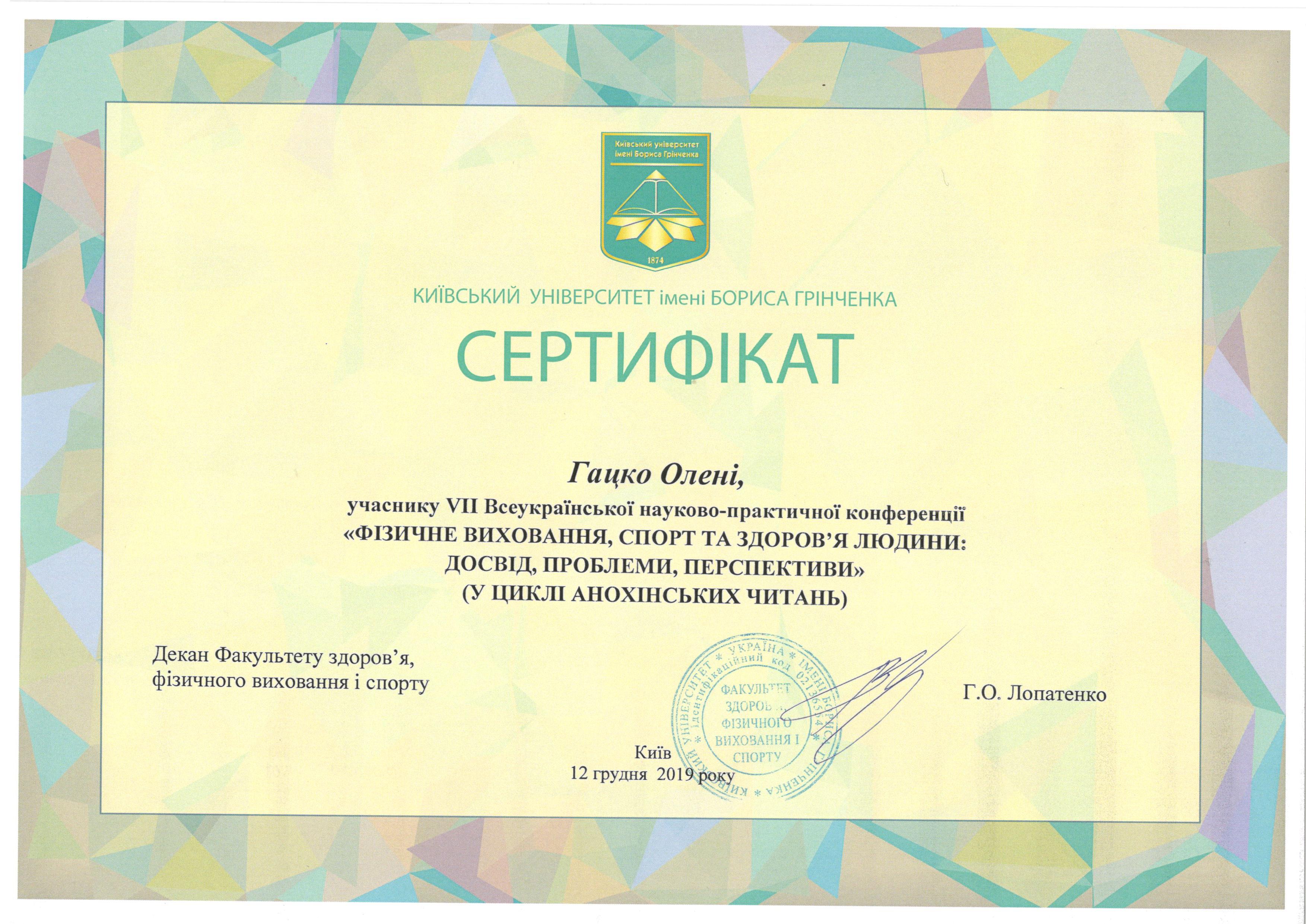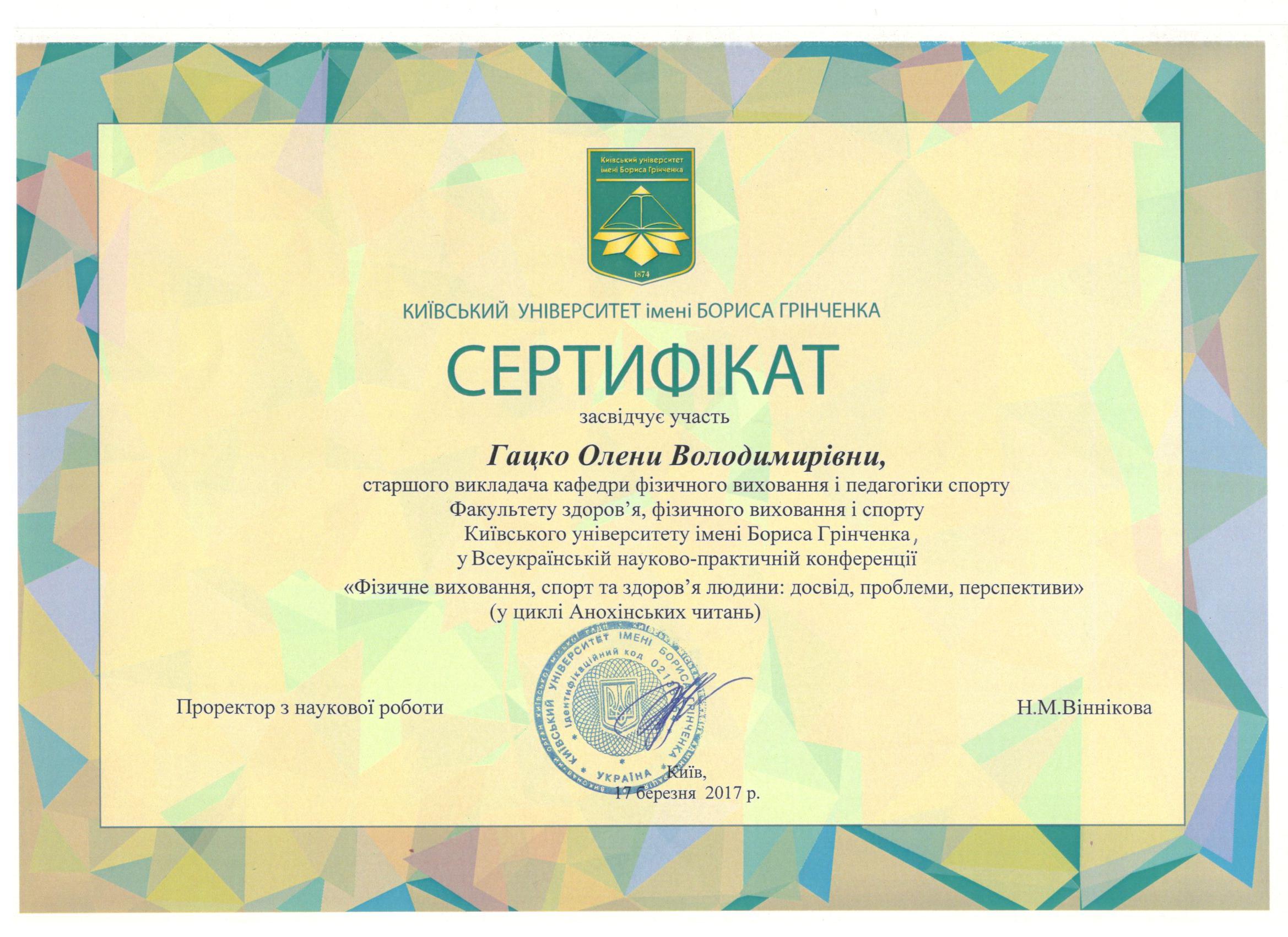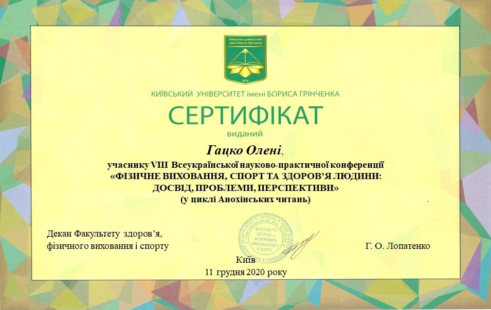 | 6292 | VІІІ Всеукраїнська науково-практична конференція "Фізичне виховання, спорт та здоровя людини: досвід, проблеми, перспективи" (у циклі Анохінських читань) | без доповіді | Київ, КУ імені Бориса Грінченка |
