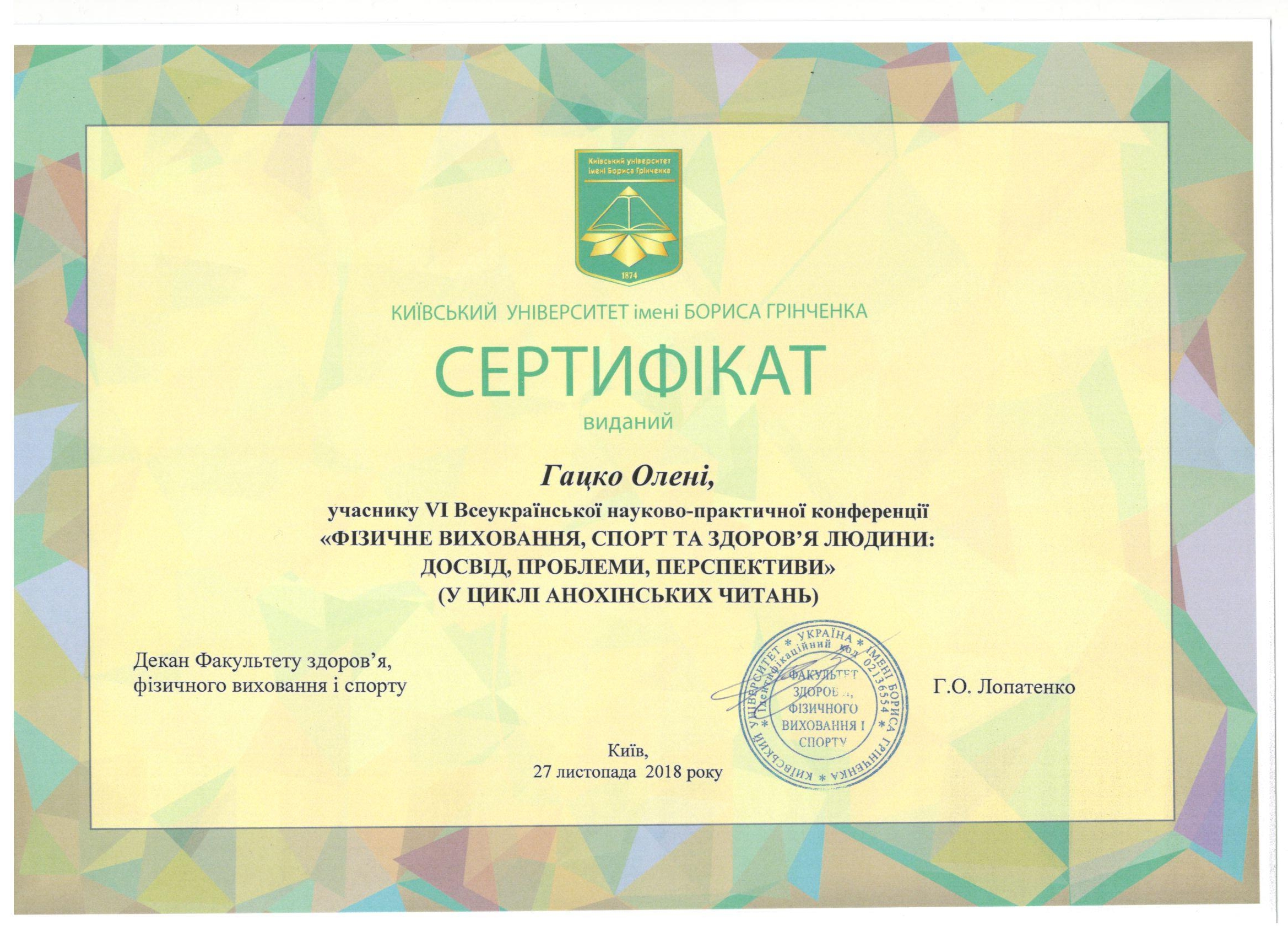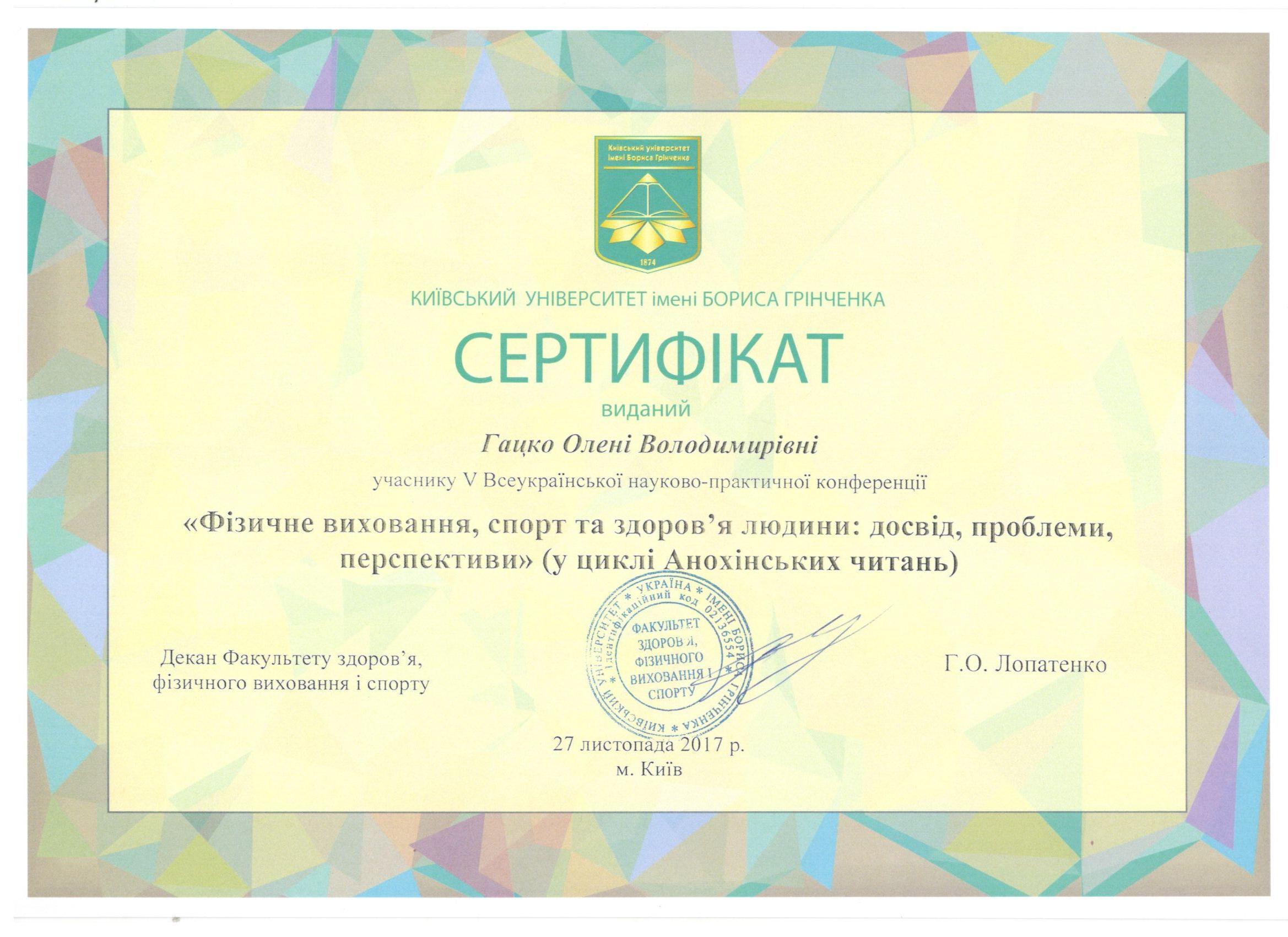 | 5018 | Фізичне виховання, спорт та здоровя людини: досвід, проблеми, перспективи (у циклі Анохінських читань) | без доповіді | м. Київ, КУ імені Бориса Грінченка |