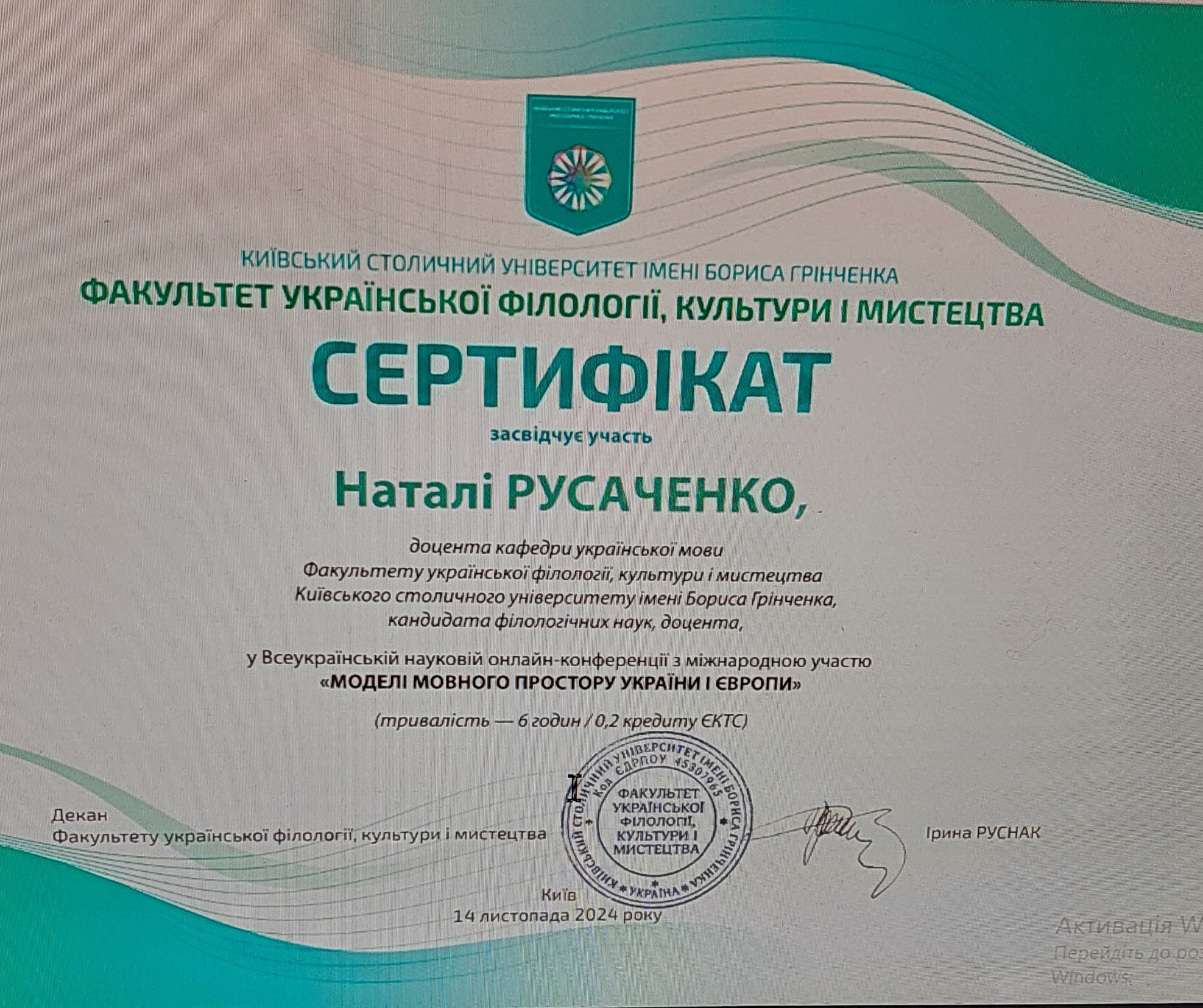 Відповідальна за соціальний проєкт Київського університету імені Бориса Грінченка "З Києвом і для Києва" від кафедри української мови Науково-дослідна та міжнародна діяльність