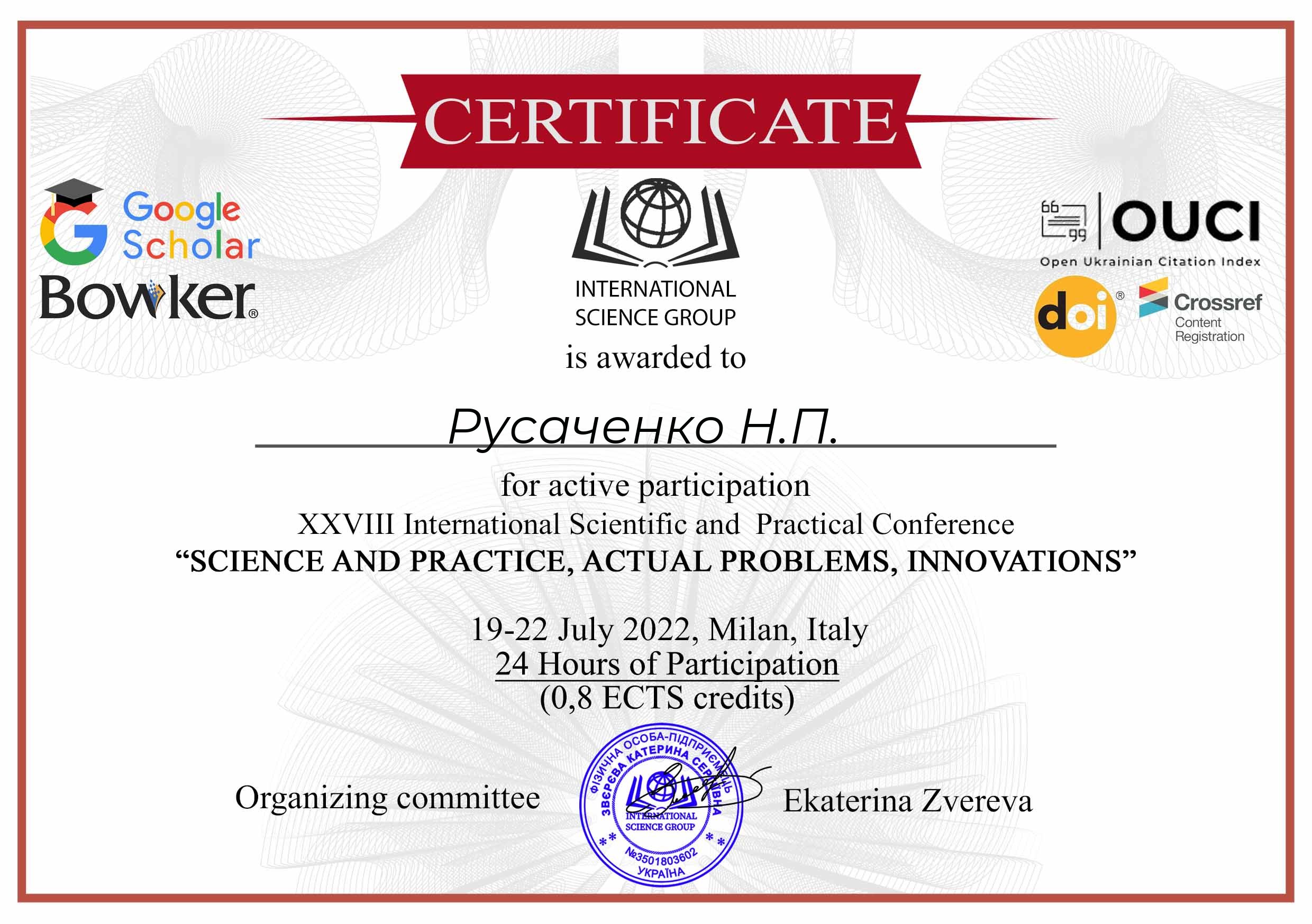 | 8248 | XXVIII Міжнародна науково-практична конференція «Science and practice, actual problems, innovations | До питання формування лінгвоетикету українців | Мілан |