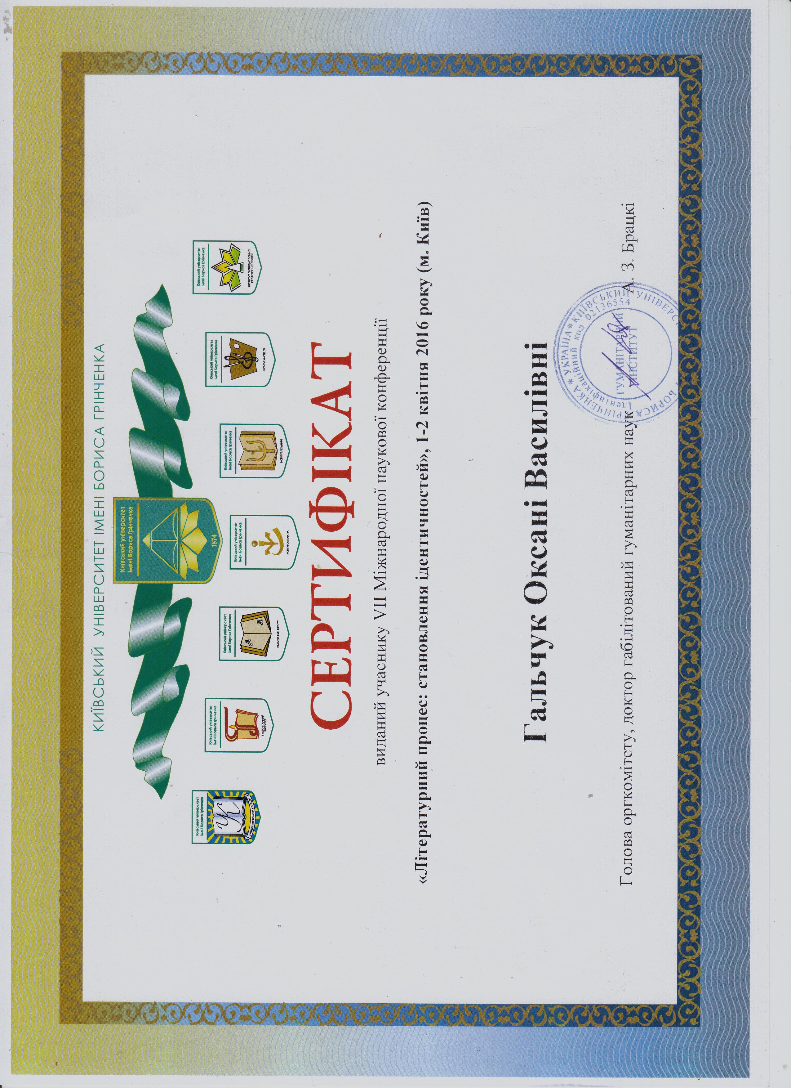 | 736 | Доктор наук | Професор | Професор кафедри | Факультет української філології, культури і мистецтва | 2023 | 121512 | Свідоцтво_Гальчук_2023.pdf |