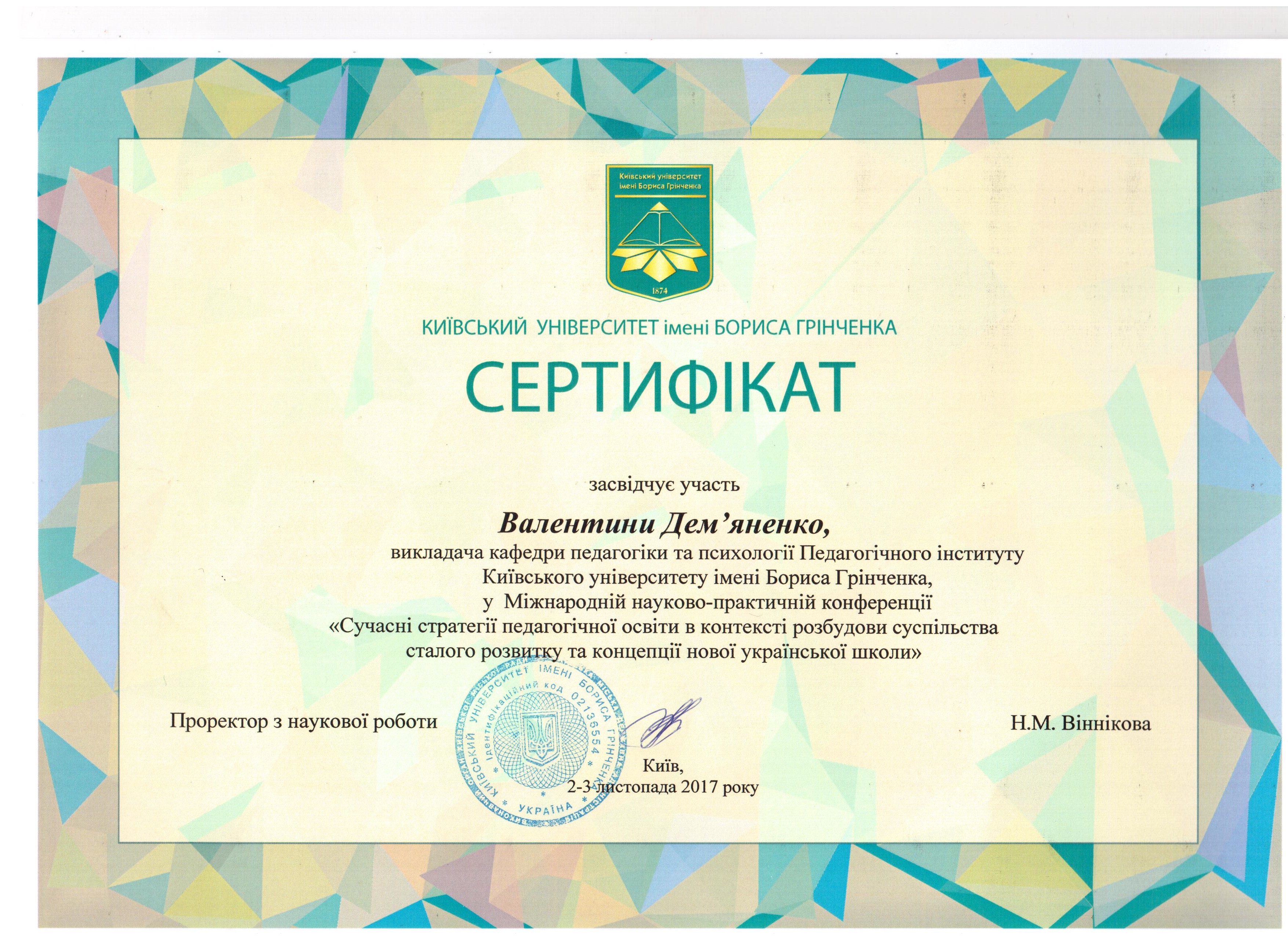 | 2522 | Міжнародна науково-практична конференція «Сучасні стратегії педагогічної освіти в контексті розбудови суспільства сталого розвитку та концепції Нової української школи» | Пріоритет цінностей у підготовці майбутніх учителів початкової школи | КУ імені Бориса Грінченка |