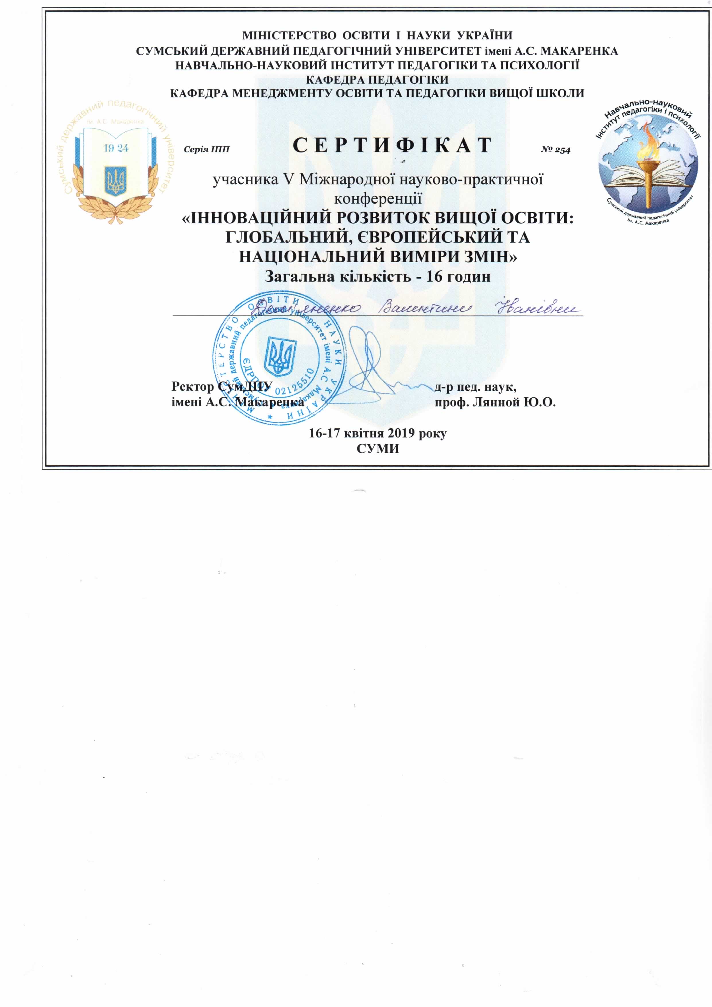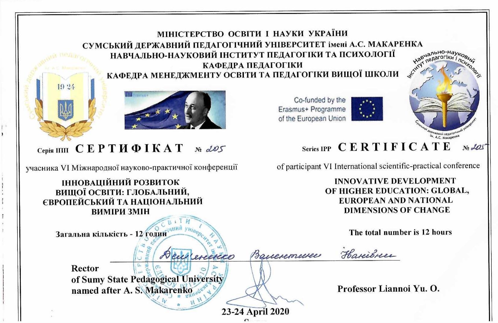 | 8846 | Педагогіка у міждисциплінарному вимірі: феномен інноваційності вищої освіти | учасник | онлайн-конференція | document.pdf | |