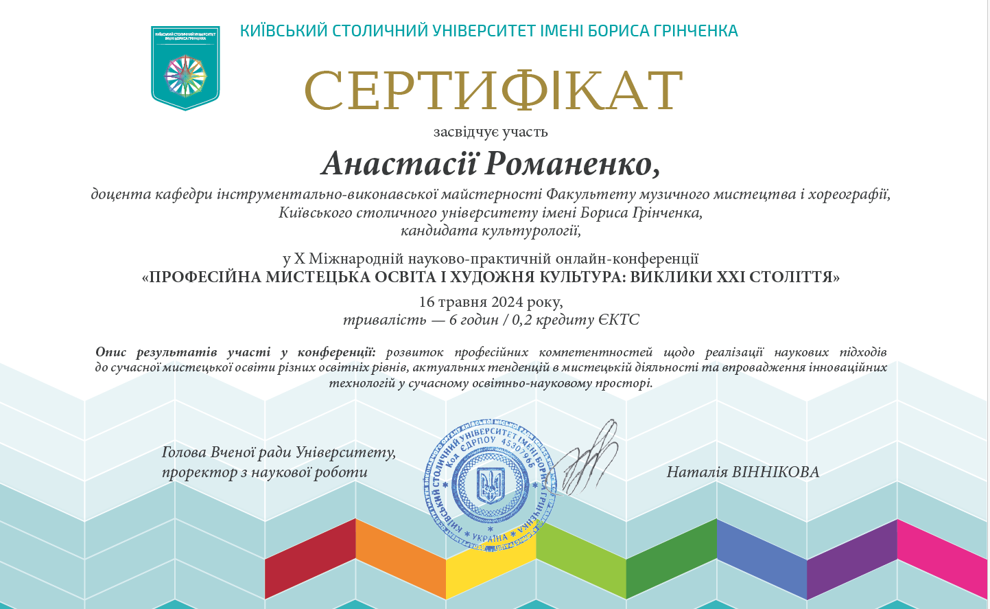 | 4270 | V Міжнародна науково-практична конференція «Професійна мистецька освіта і художня культура : виклики XXI століття» | Погляди Роберта Шумана на підготовку музиканта | Київський університет імені Бориса Грінченка |