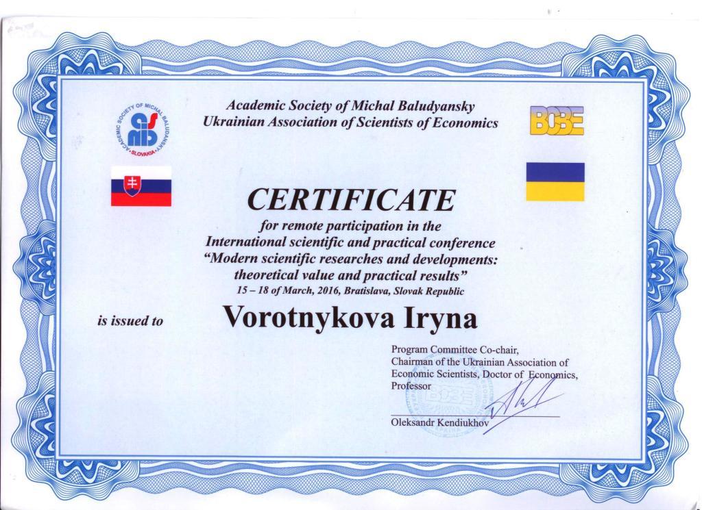| 1084 | ?odern scientific reserches and developments: theoretical value and practical reslts | Модель перевернутого класу для навчання вчителів | Bratislava, Slovak Republic |