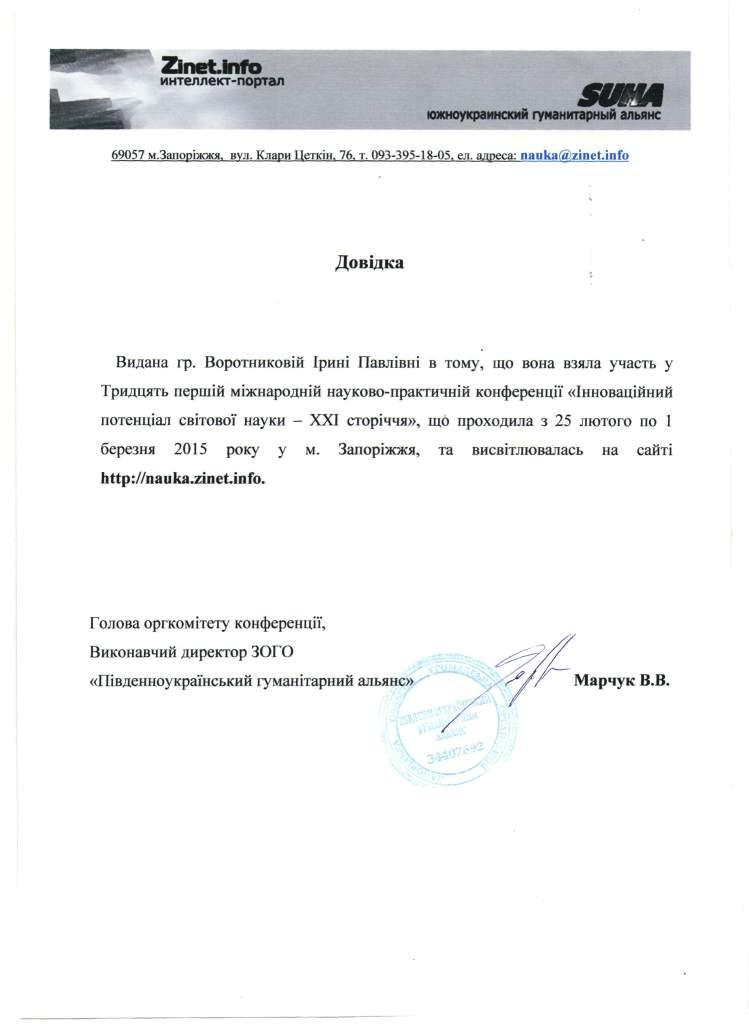 | 1086 | 'Інноваційний потенціал світової науки XXI сторіччя' | Впровадження технологій змішаного навчання для створення відкритої післядипломної педагогічної освіти | Запоріжжя |