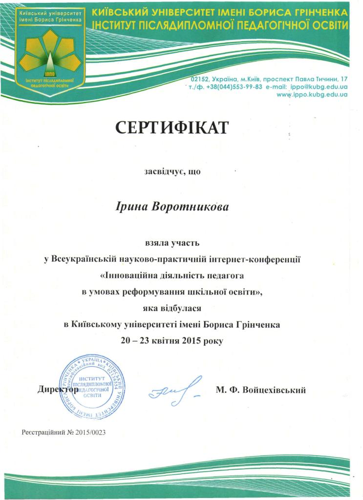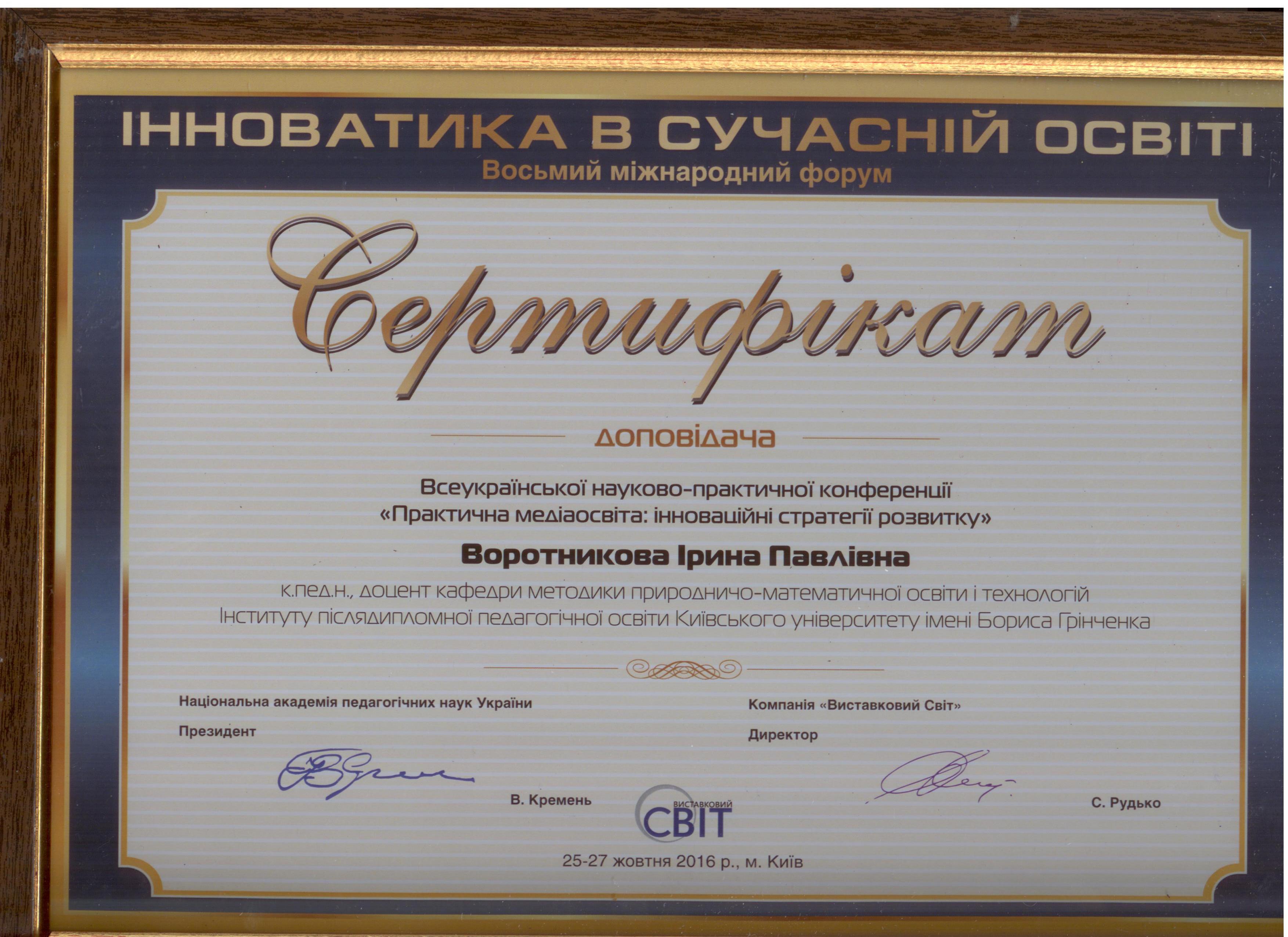 | 1227 | 8 Міжнародний форум "Інноватика в освіті" | Методика використання інтерактивних он-лайн вправа для формування медіа грамотності учнів | Київ |