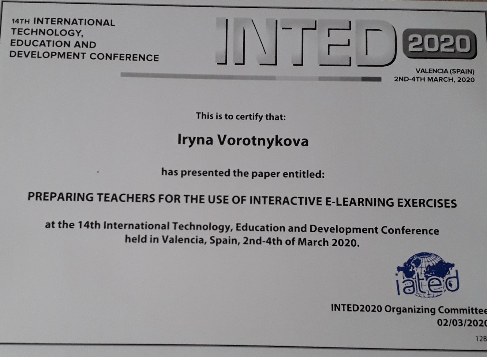 | 5213 | 14 th International Technology, Education and Development Conference | Preparing teachers for use interacrive e-learning exercises | Spain, Valencia |