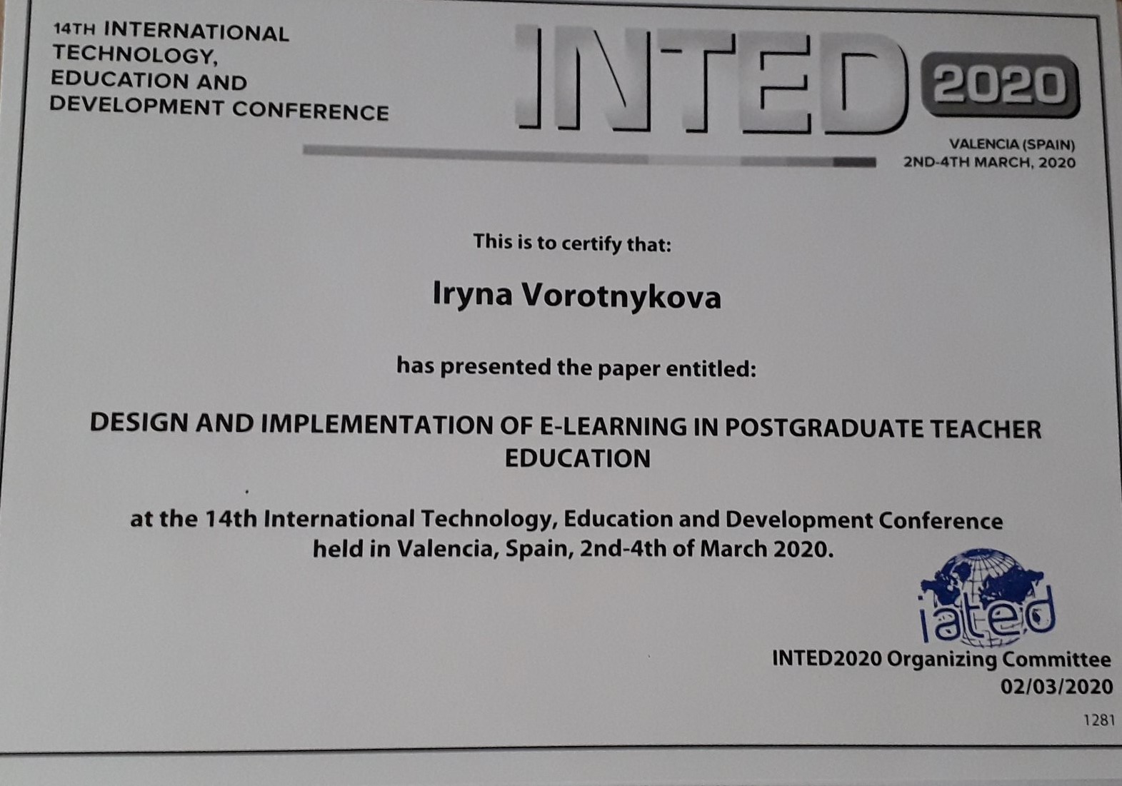 | 5214 | 14 th International Technology, Education and Development Conference | Design and implementation of e-learning in postgraduate teacher | Spain, Valencia |