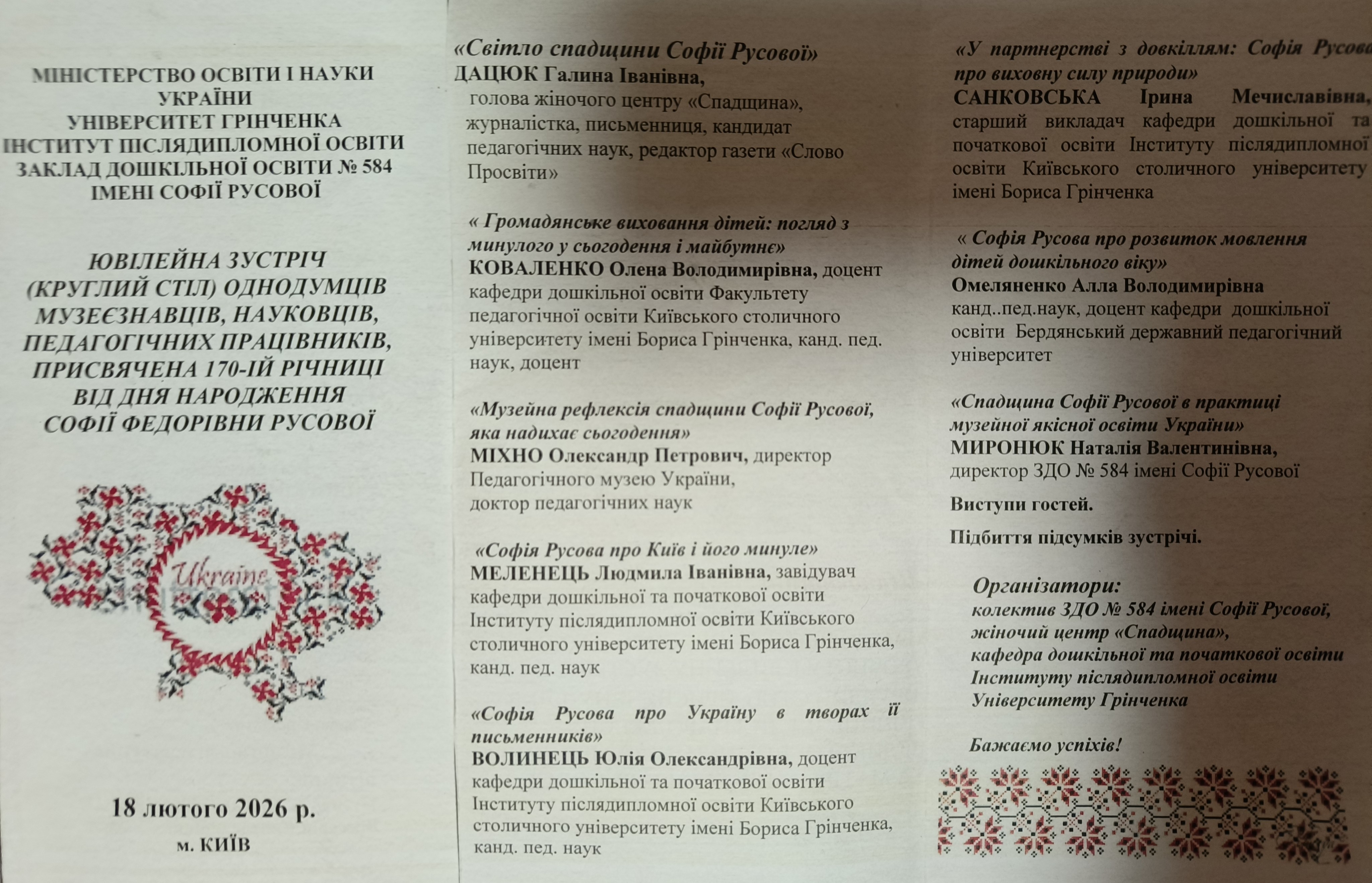 11566 Урочистості, присвячені 160-ій річниці від дня народження Софії Русової Софія Русова про "дитячий сад на національному грунті" м. Київ document