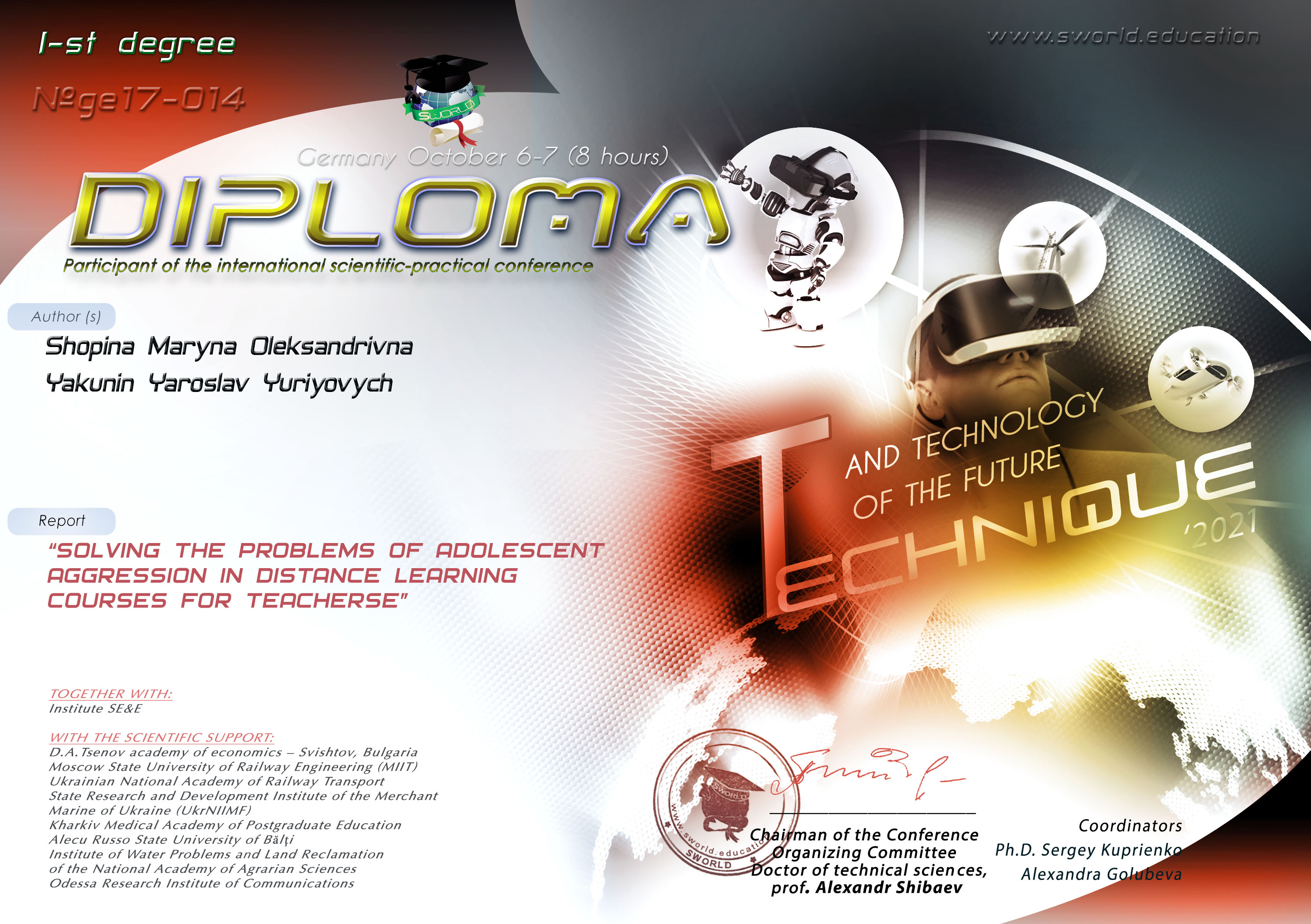 7642 The decision of the Organizing Committee of the conference "Technique and technology of the future '2021" ВИРІШЕННЯ ПРОБЛЕМ ПІДЛІТКОВОЇ АГРЕСІЇ НА ДИСТАНЦІЙНИХ КУРСАХ ДЛЯ ВЧИТЕЛІВ Karlsruhe, Germany document
