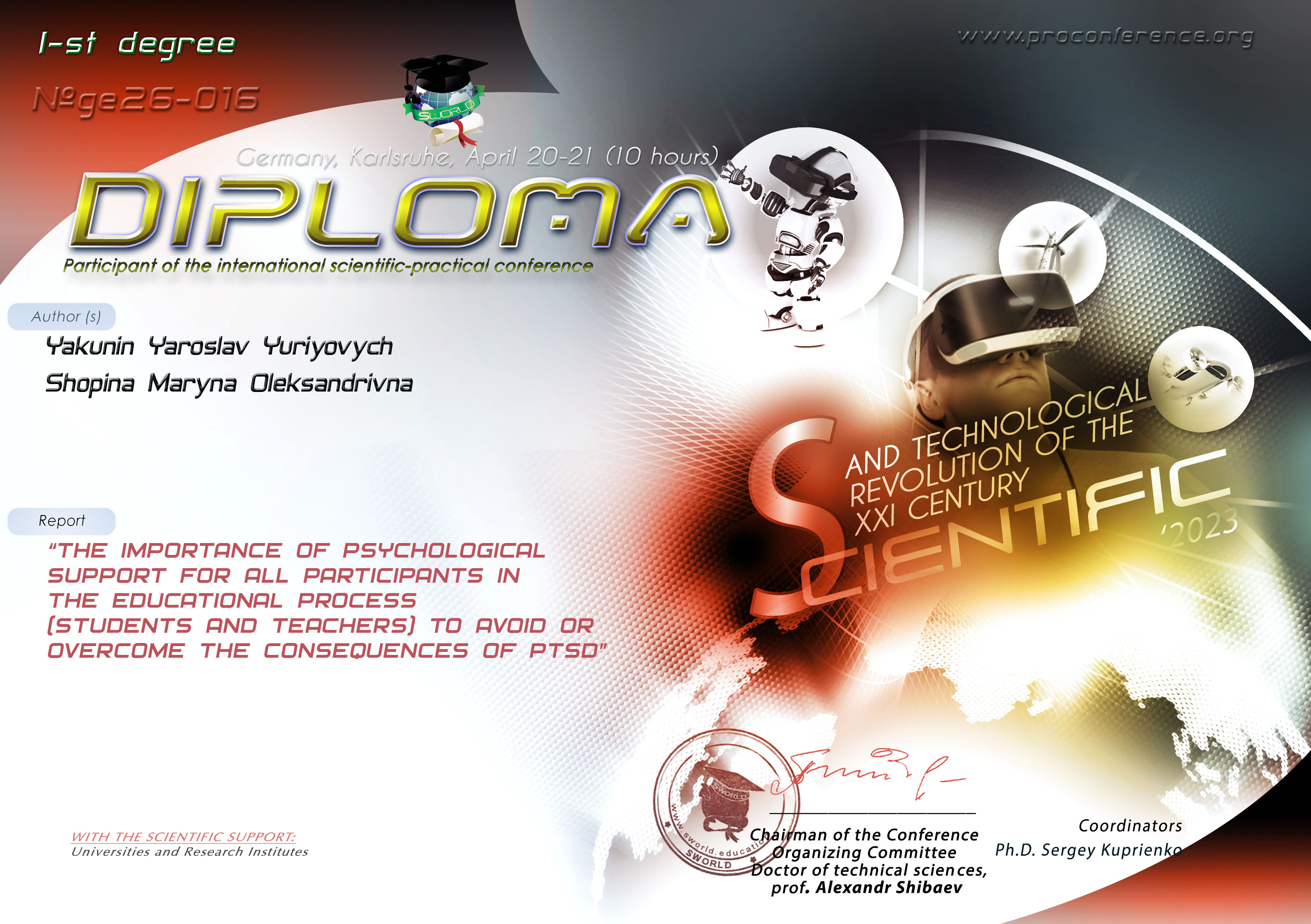 9798 Scientific and technological revolution of the XXI century '2023 Важливість психологічної підтримки усіх учасників освітнього процесу (учнів та педагогів) для уникнення або подолання наслідків ПТСР Germany document