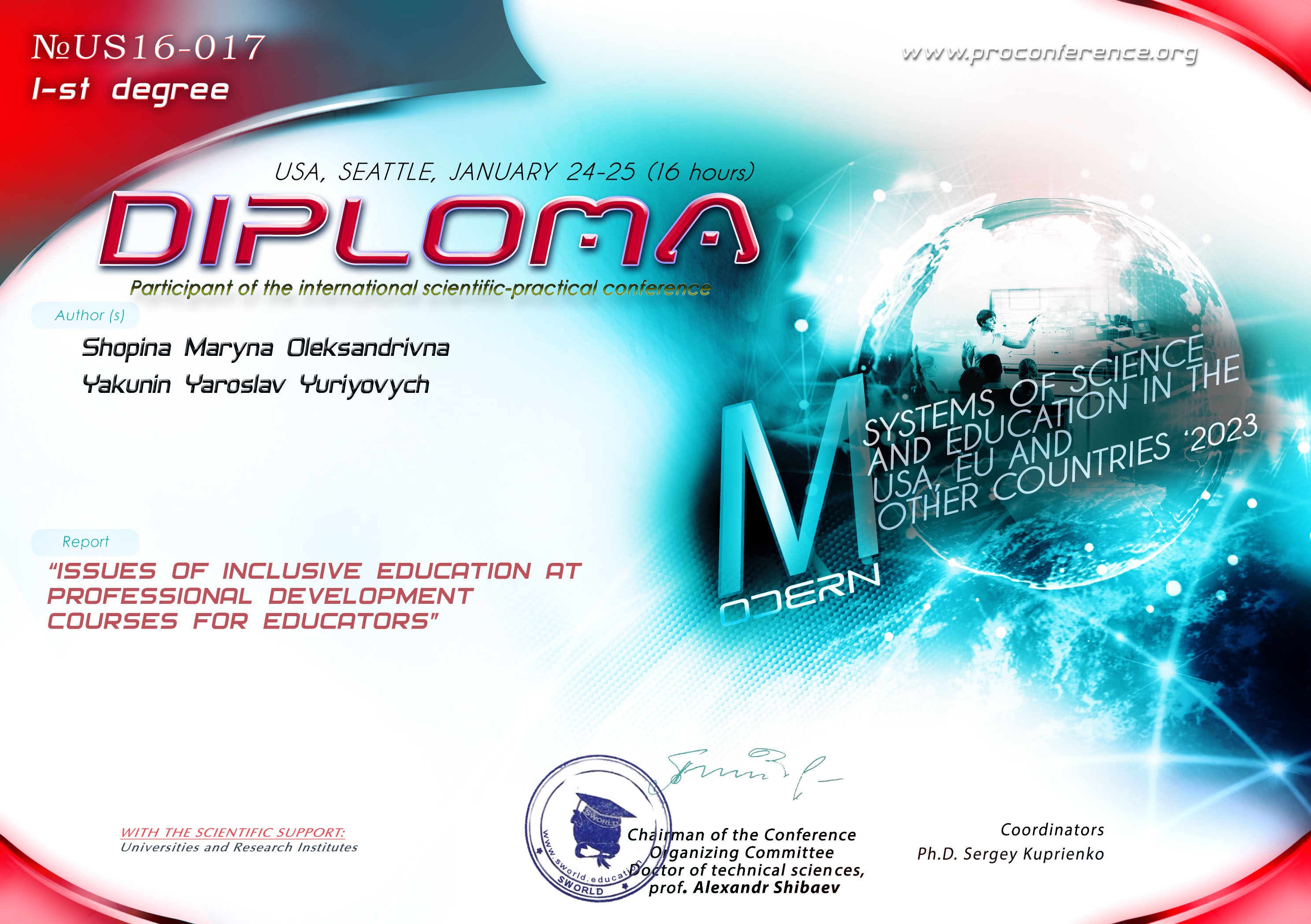 9799 Modern systems of science and education in the USA, EU and other countries '2023" Питання інклюзивної освіти на курсах підвищення кваліфікації для освітян USA document