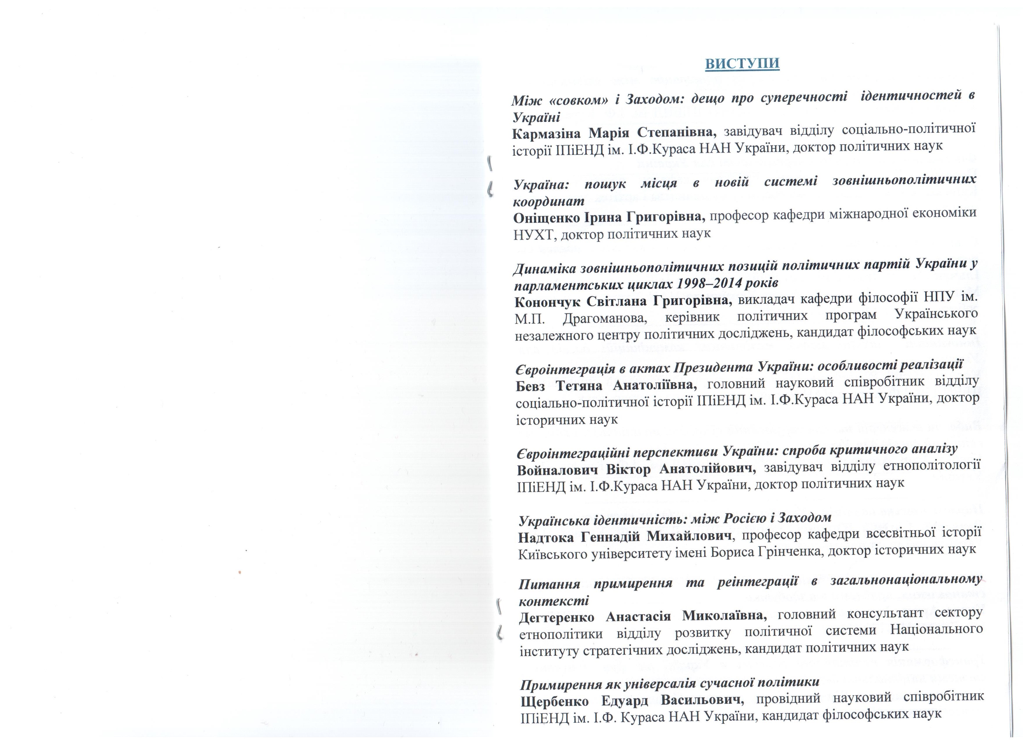| 555 | Україна і Захід: сучасна динаміка та перспективи | Українська ідентичність: між Росією і Заходом | м. Київ |