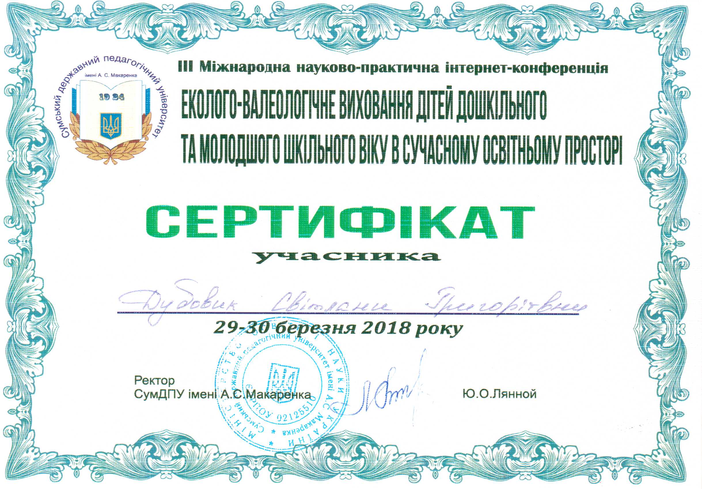 | 3413 | Еколого-валеологічне виховання дітей дошкільного та молодшого шкільного віку в сучасному освітньому просторі | Еколого-валеологічний аспект у змісті освітньої галузі початкової школи "Мова і література" | м. Суми |