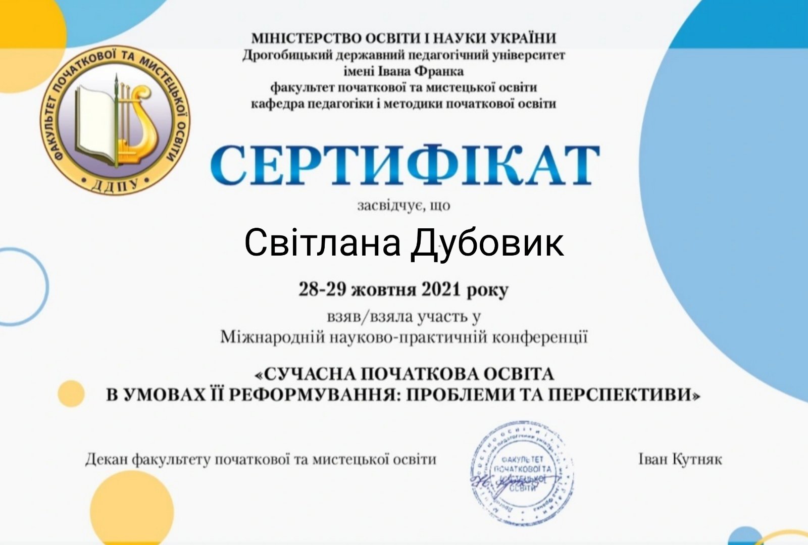 | 124 | Факультет педагогічної освіти | Кафедра початкової освіти | 67.8 | 1 | 2025 | https://www.researchgate.net/profile/Svitlana_Dubovyk |